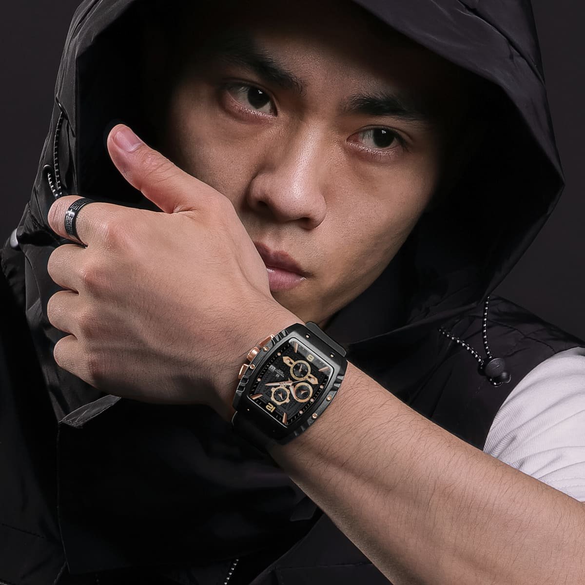 ساعة يد نافي فورس Naviforce NF 8025 B RG B رجالي أصلية موديل ( NF8025 ) نظرية Chronograph-WR3ATM بلون اسود و استيك سيليكون مطاط بلون اسود احصل عليها الآن من SAN CAN للساعات – SAN CAN Watches