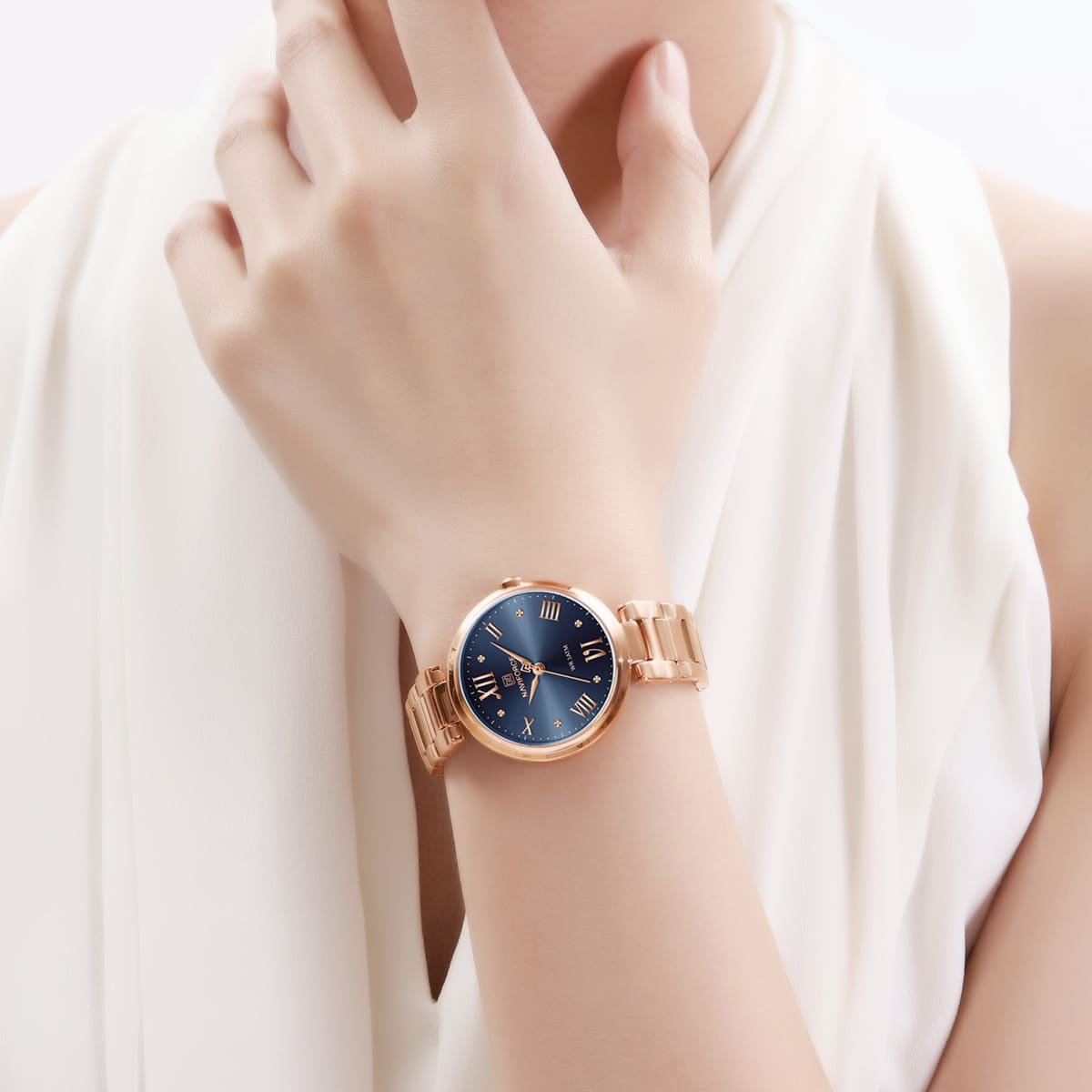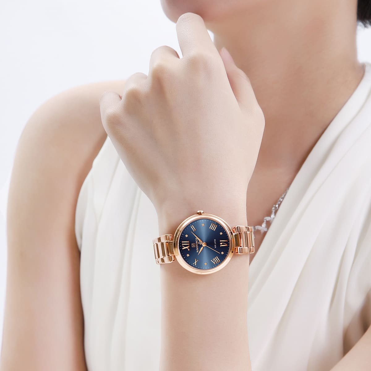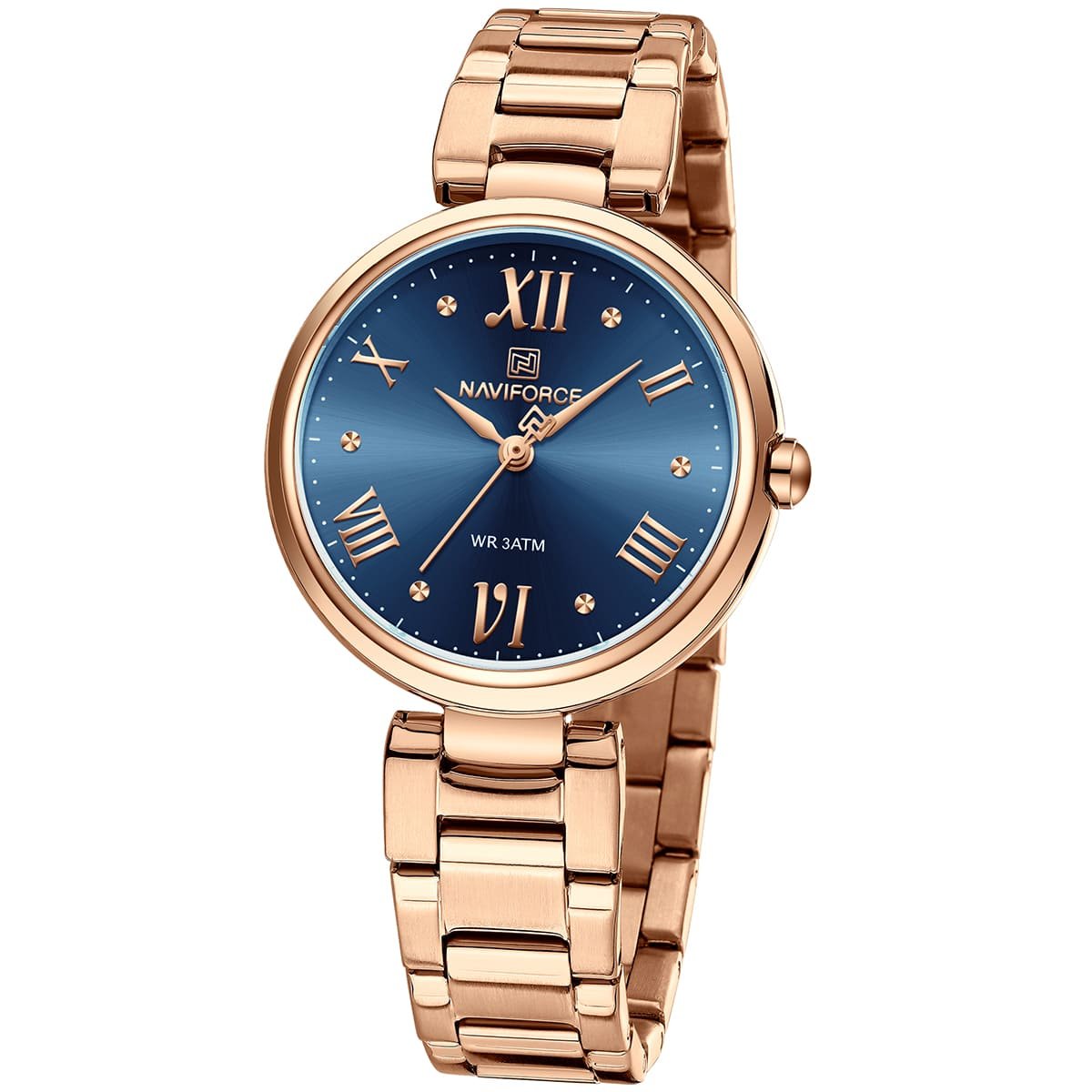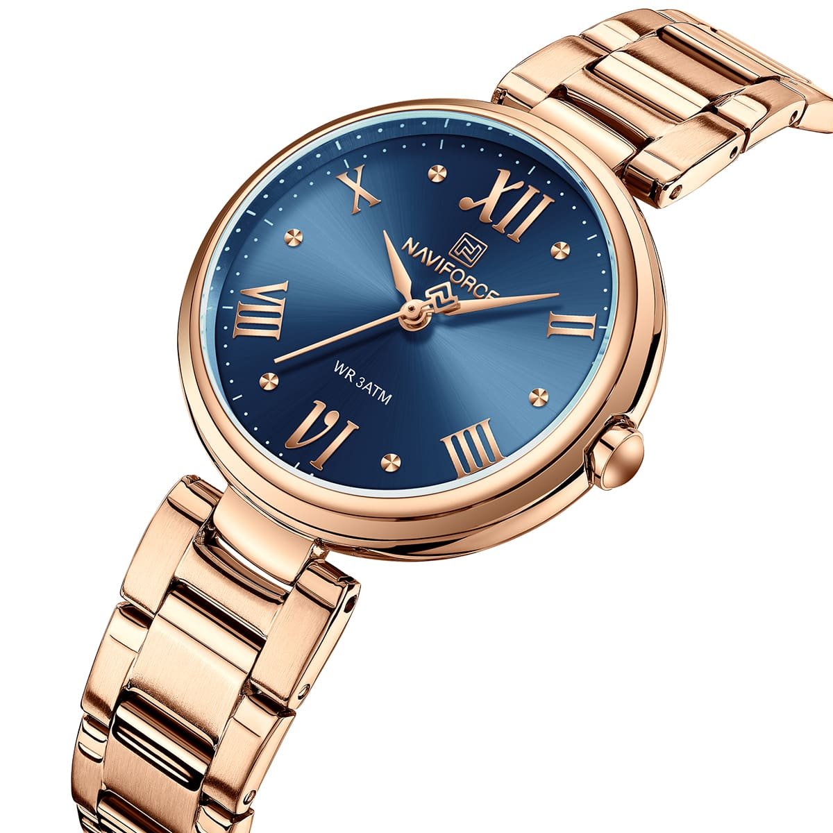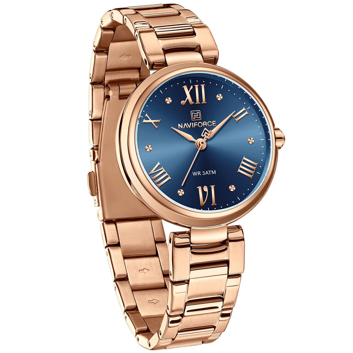 ساعة يد نافي فورس Naviforce NF 5030 RG BE حريمي أصلية موديل ( NF5030 ) نظرية WR 3ATM بلون ازرق و استيك ستانلس ستيل بلون نحاسي احصل عليها الآن من SAN CAN للساعات – SAN CAN Watches