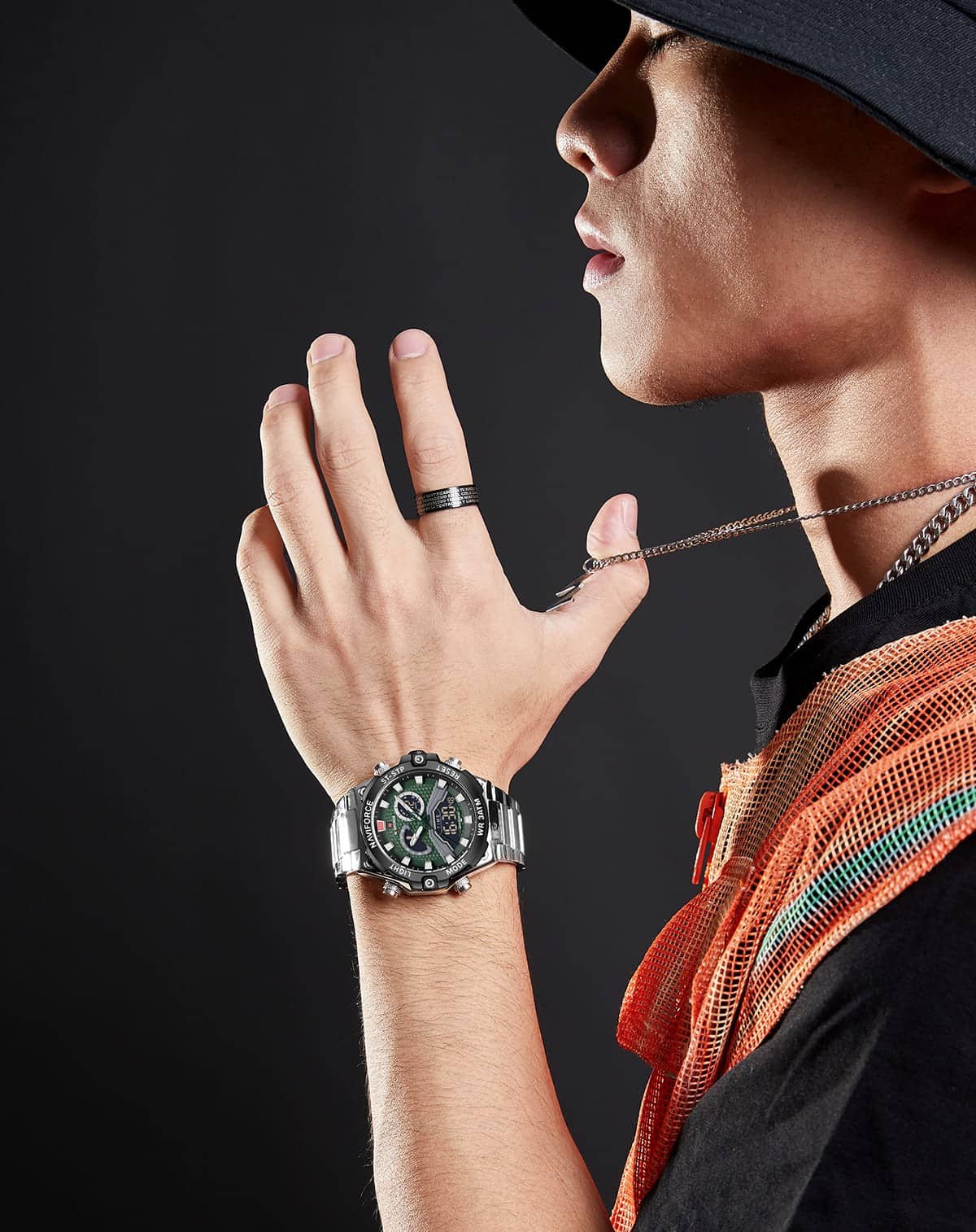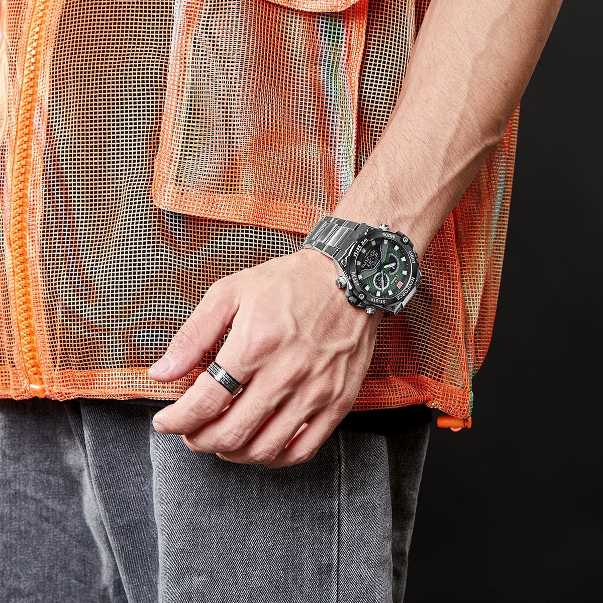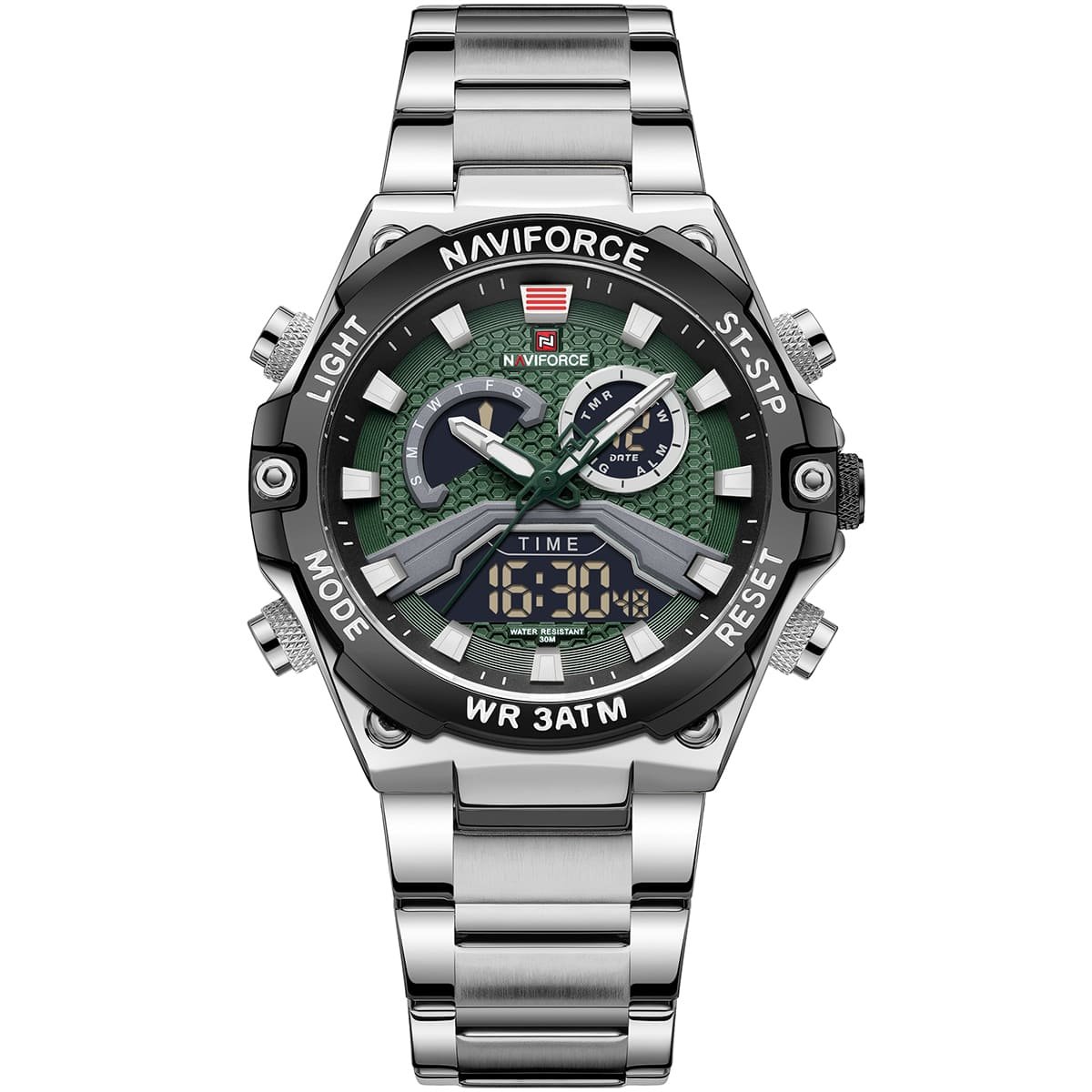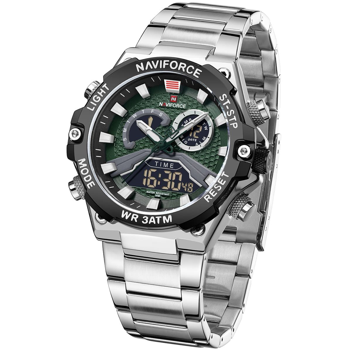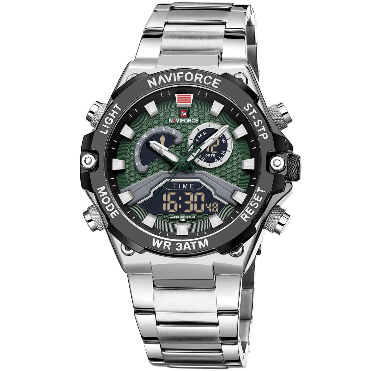 ساعة يد نافي فورس Naviforce NF 9207 S B GN رجالي أصلية موديل ( NF9207 ) نظرية و رقميةبلون مينا اخضر و استيك معدن بلون فضي احصل عليها غدا خلال 24 ساعة داخل القاهرة و الجيزة و الاسكندرية