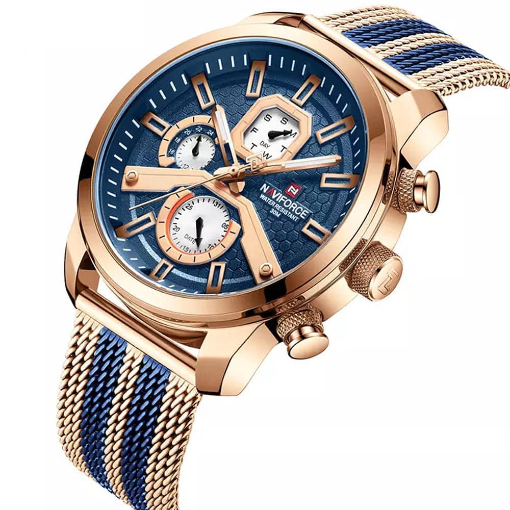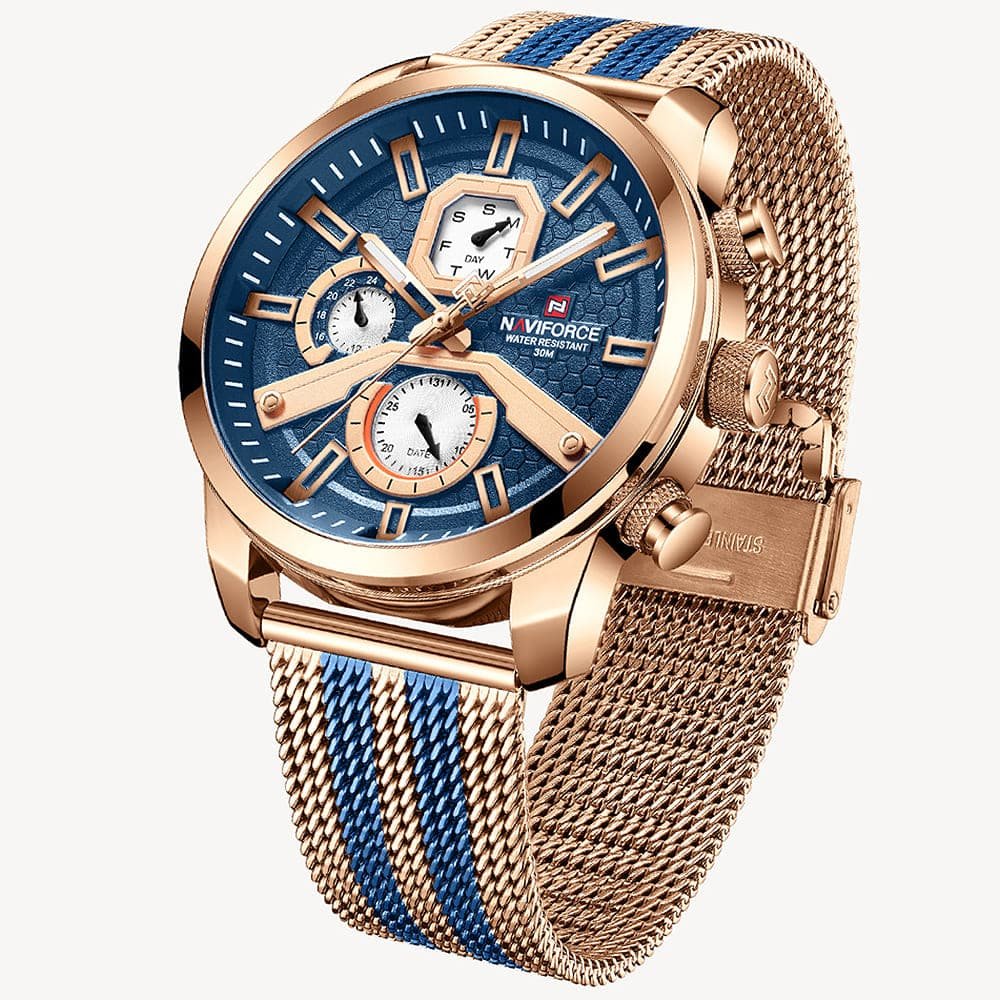 ساعة يد نافي فورس Naviforce NF9211S RG BE رجالي أصلية موديل ( NF9211S ) نظرية بلون مينا ازرق و استيك معدن بلون نحاسي و ازرق احصل عليها غدا خلال 24 ساعة داخل القاهرة و الجيزة و الاسكندرية