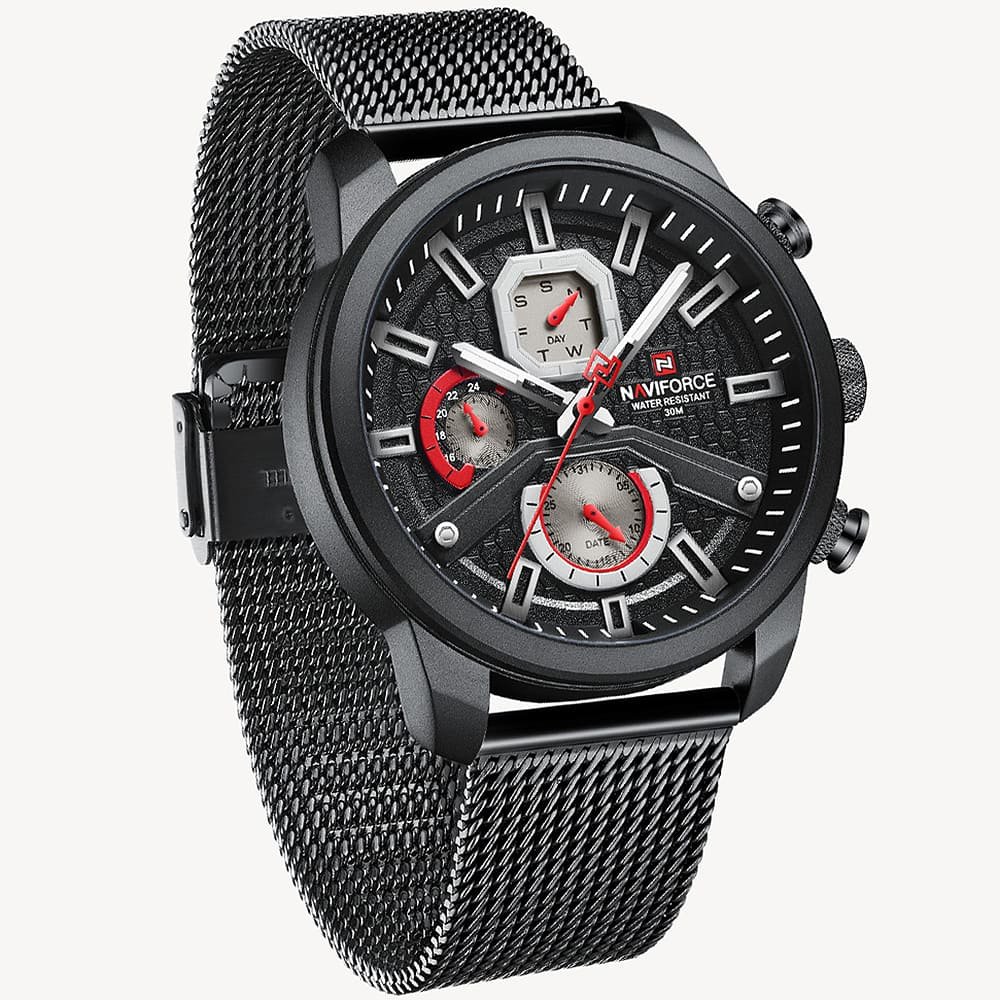 ساعة يد نافي فورس Naviforce NF9211S B B رجالي أصلية موديل ( NF9211S ) نظرية بلون مينا اسود و استيك معدن بلون اسود احصل عليها غدا خلال 24 ساعة داخل القاهرة و الجيزة و الاسكندرية