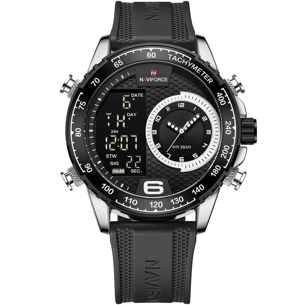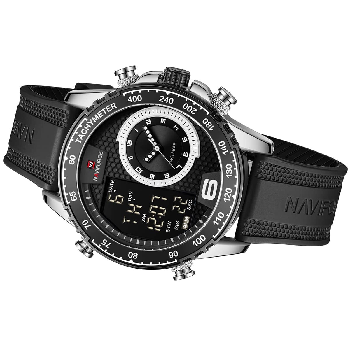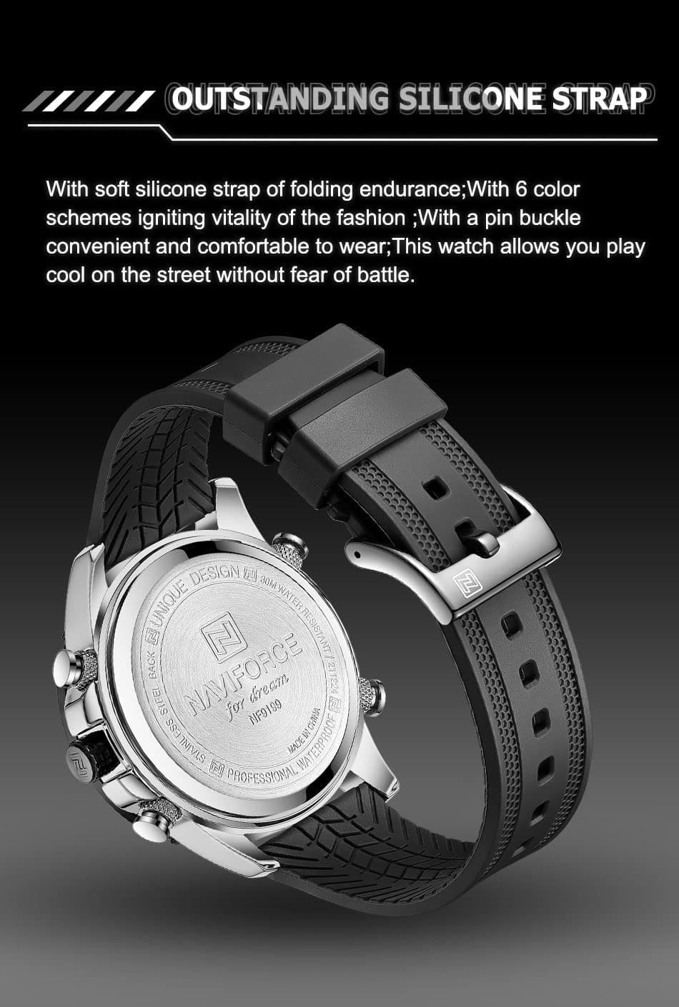 ساعة يد نافي فورس Naviforce NF9199T S W B رجالي أصلية موديل ( NF9199T ) نظرية و رقمية بلون مينا اسود و استيك سيليكون مطاط بلون اسود احصل عليها غدا خلال 24 ساعة داخل القاهرة و الجيزة و الاسكندرية