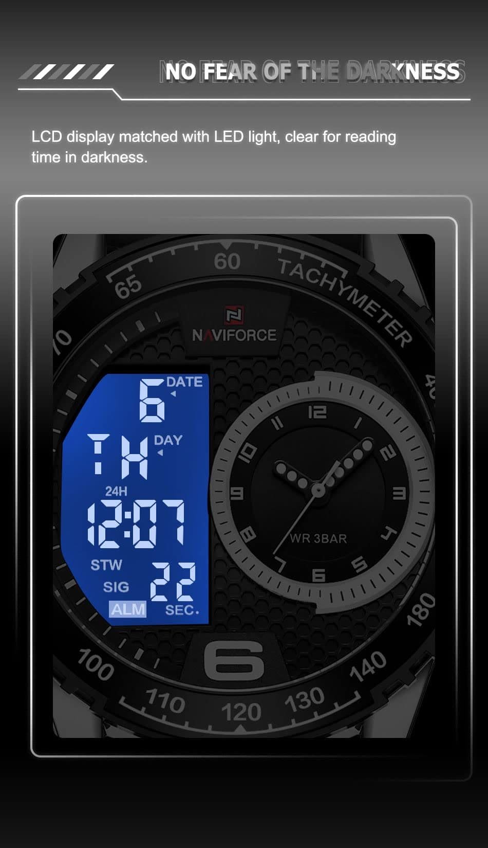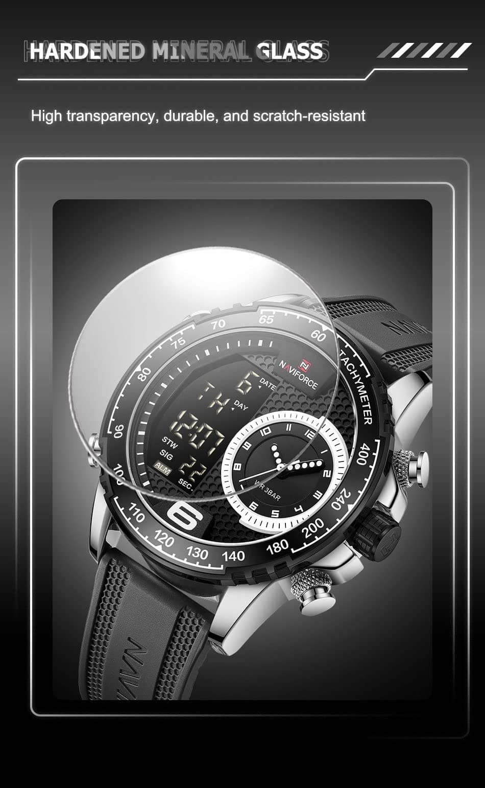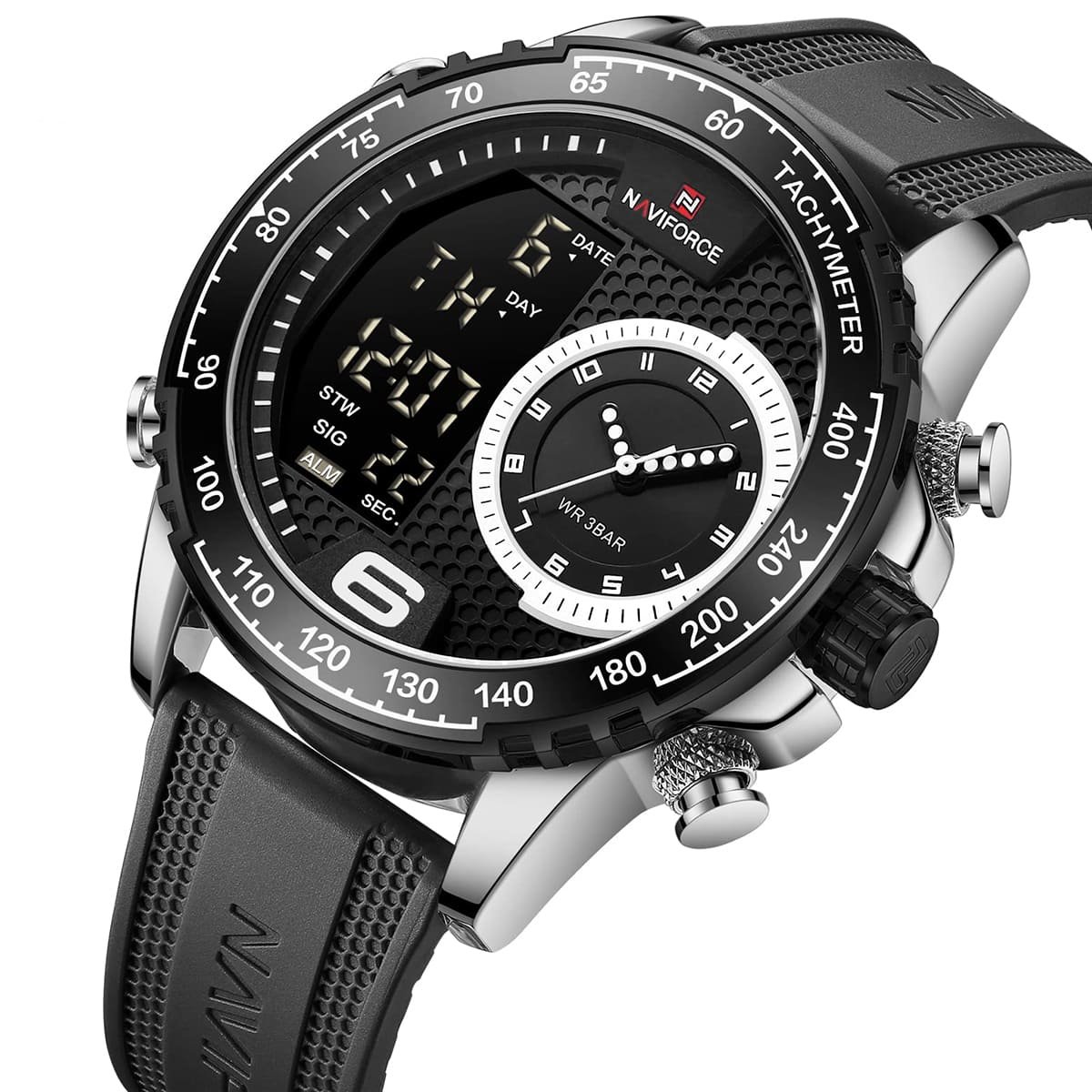ساعة يد نافي فورس Naviforce NF9199T S W B رجالي أصلية موديل ( NF9199T ) نظرية و رقمية بلون مينا اسود و استيك سيليكون مطاط بلون اسود احصل عليها غدا خلال 24 ساعة داخل القاهرة و الجيزة و الاسكندرية