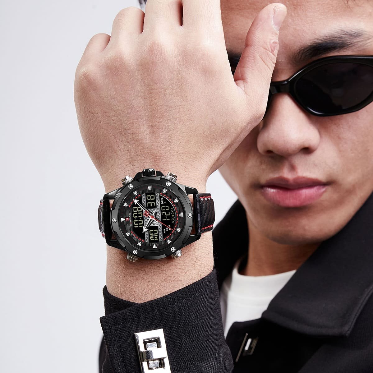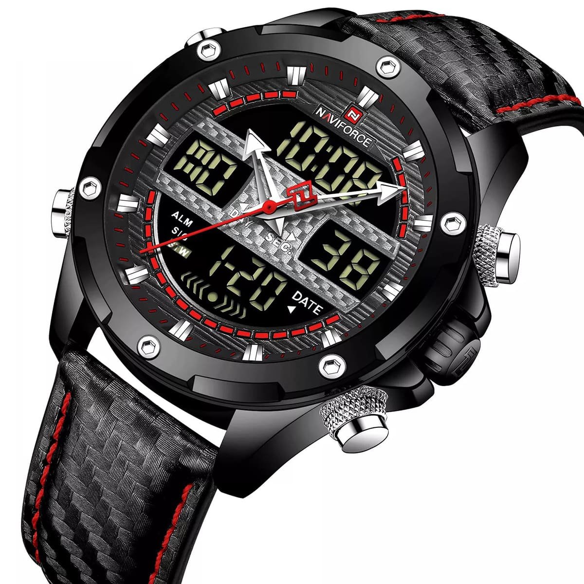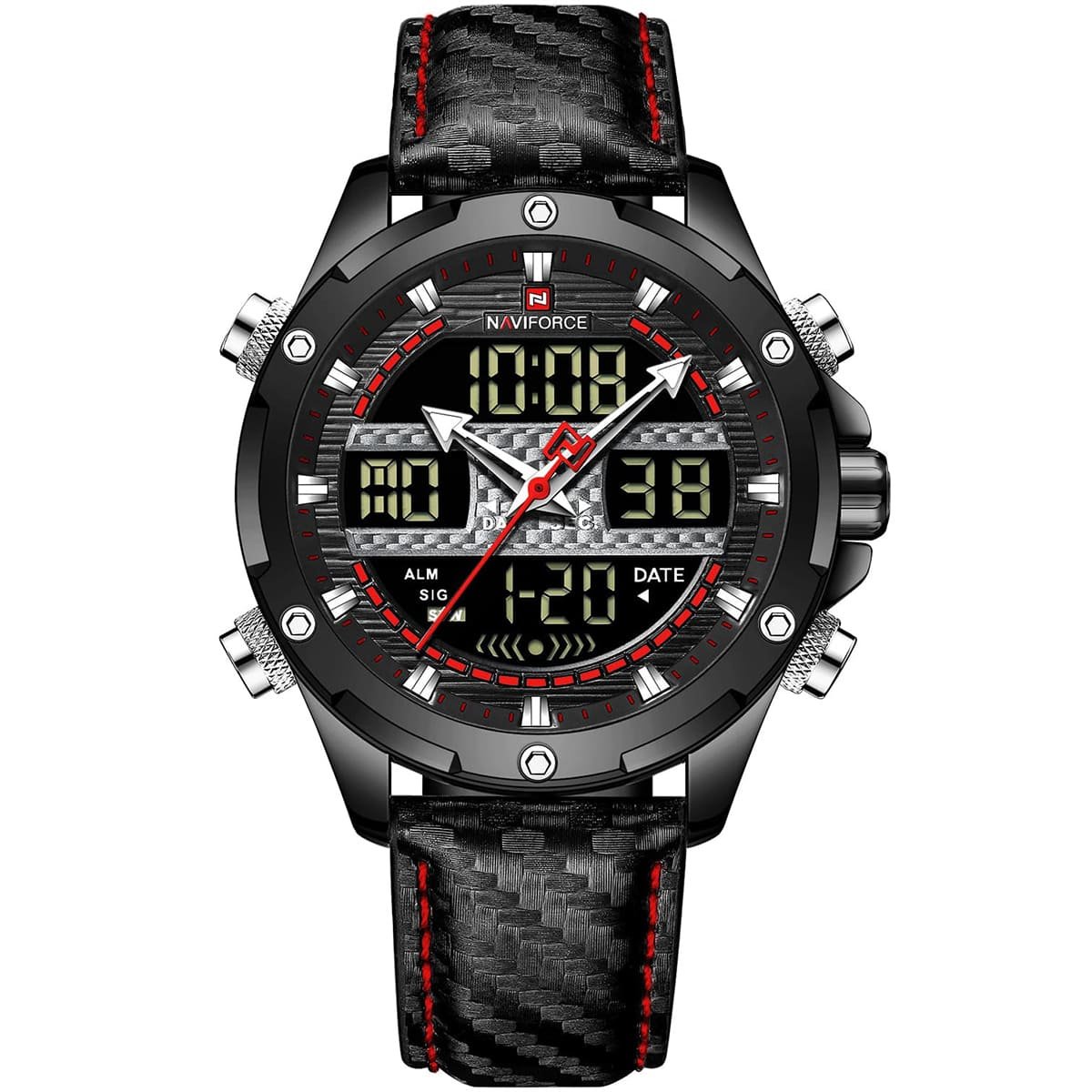 ساعة يد نافي فورس Naviforce NF9194 B R B رجالي أصلية موديل ( NF9194 ) نظرية و رقمية بلون مينا احمر و اسود و استيك جلد بلون اسود احصل عليها غدا خلال 24 ساعة داخل القاهرة و الجيزة و الاسكندرية