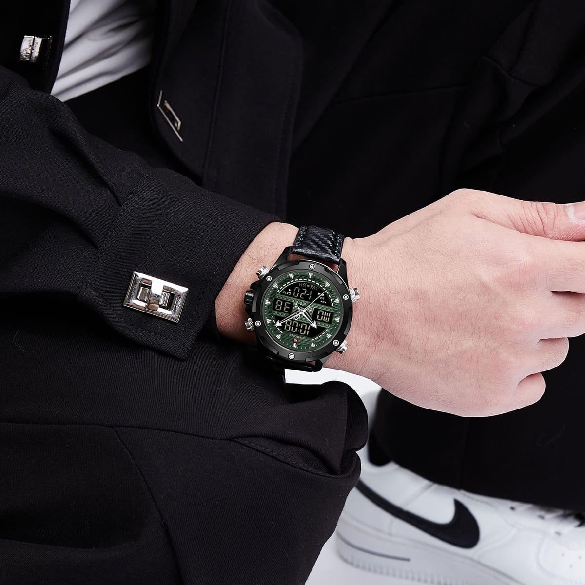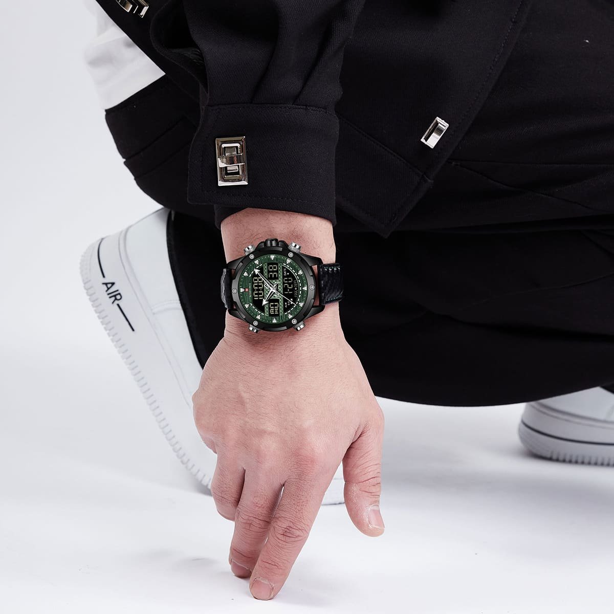 ساعة يد نافي فورس Naviforce NF9194 B GN B رجالي أصلية موديل ( NF9194 ) نظرية و رقمية بلون مينا اخضر و استيك جلد بلون اسود احصل عليها غدا خلال 24 ساعة داخل القاهرة و الجيزة و الاسكندرية