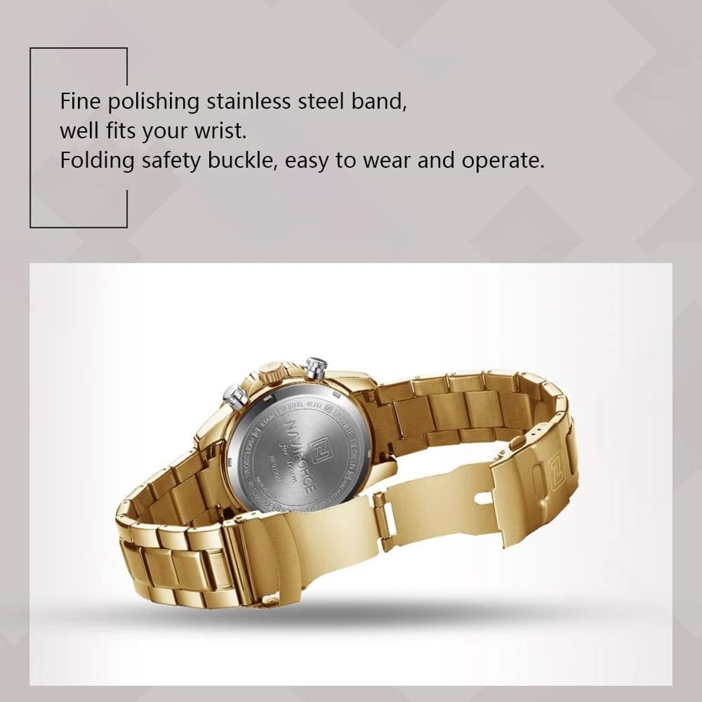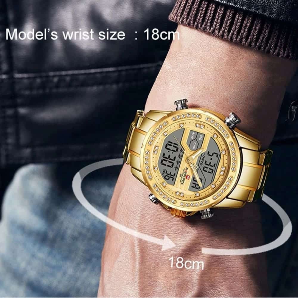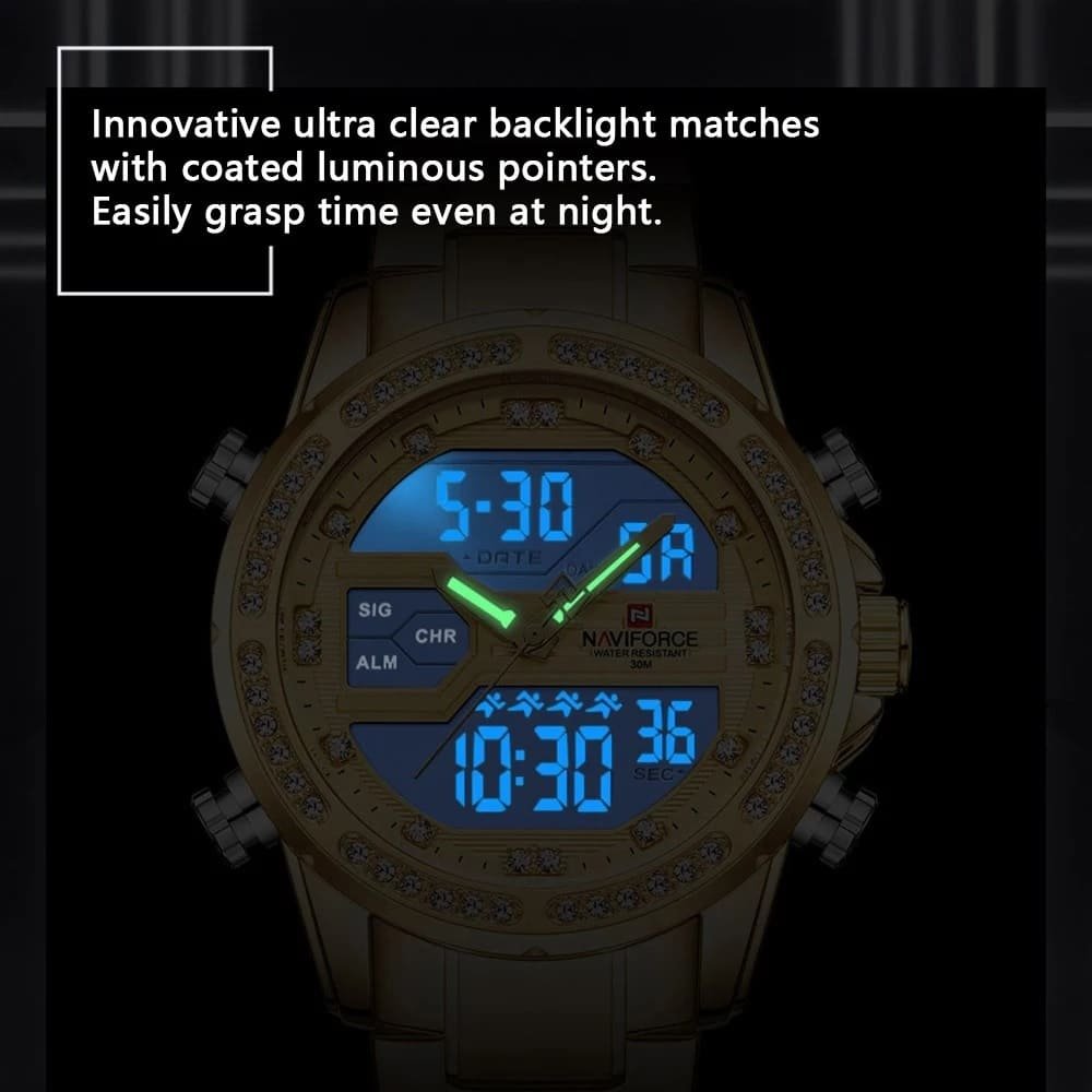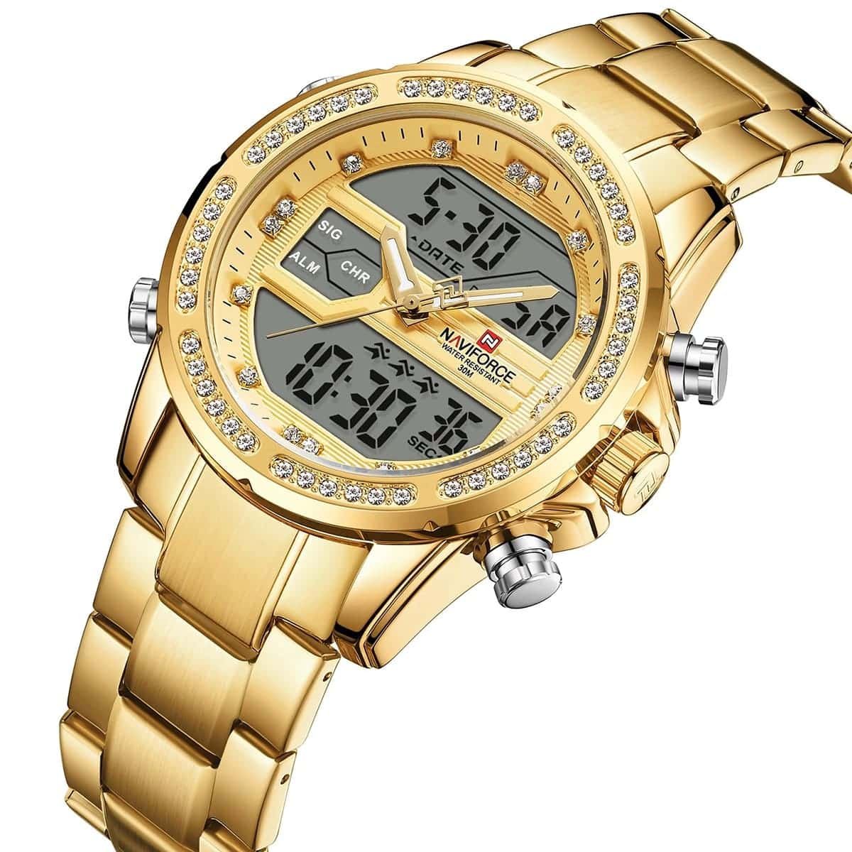 ساعة يد نافي فورس Naviforce NF9190 G G رجالي أصلية موديل ( NF9190 ) نظرية و رقمية بلون مينا ذهبي و استيك معدن بلون ذهبي احصل عليها غدا خلال 24 ساعة داخل القاهرة و الجيزة و الاسكندرية