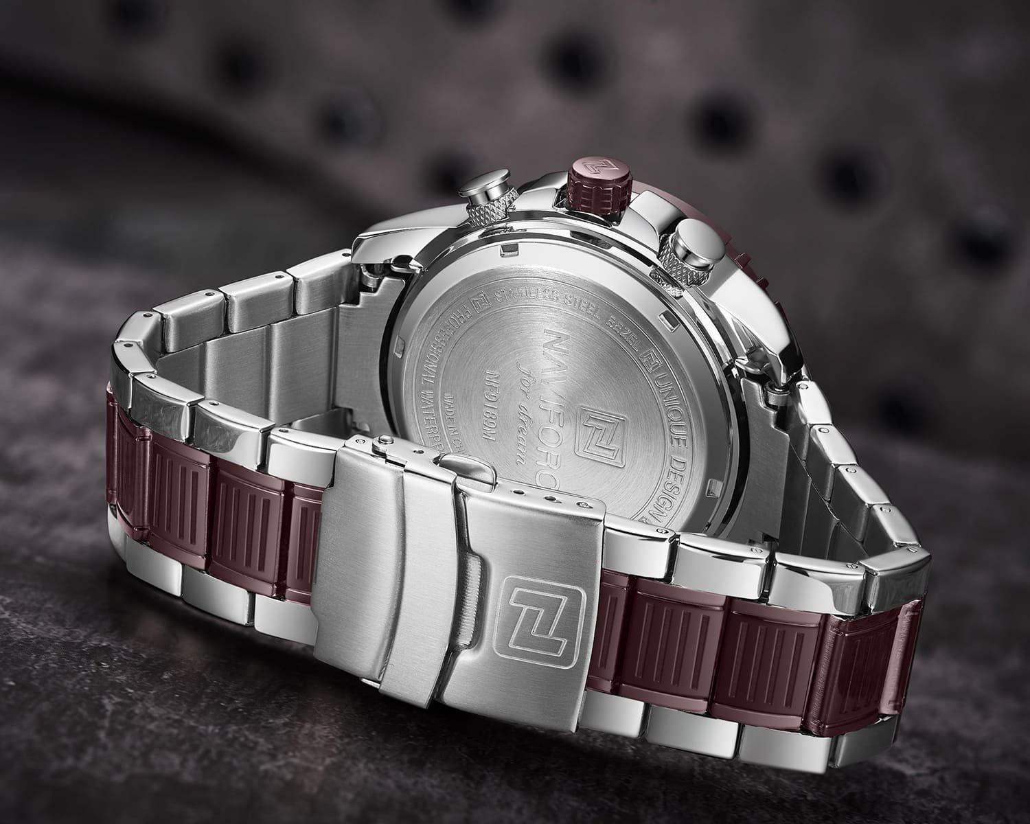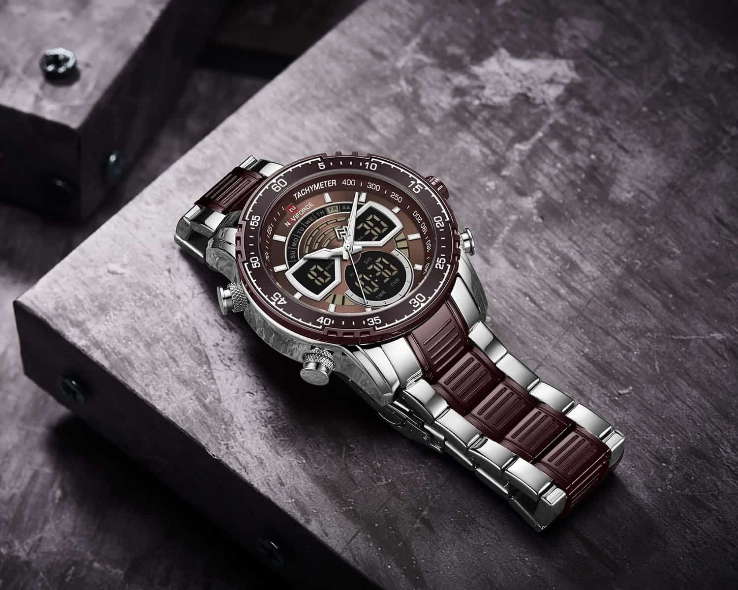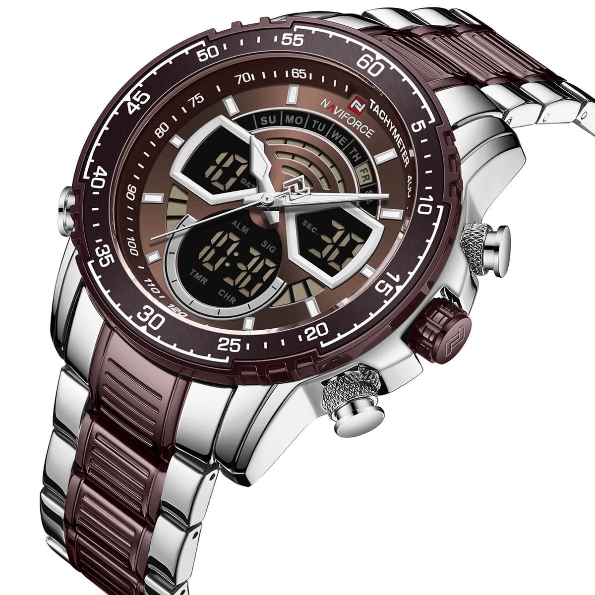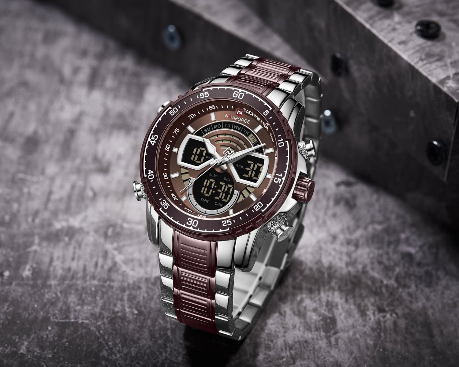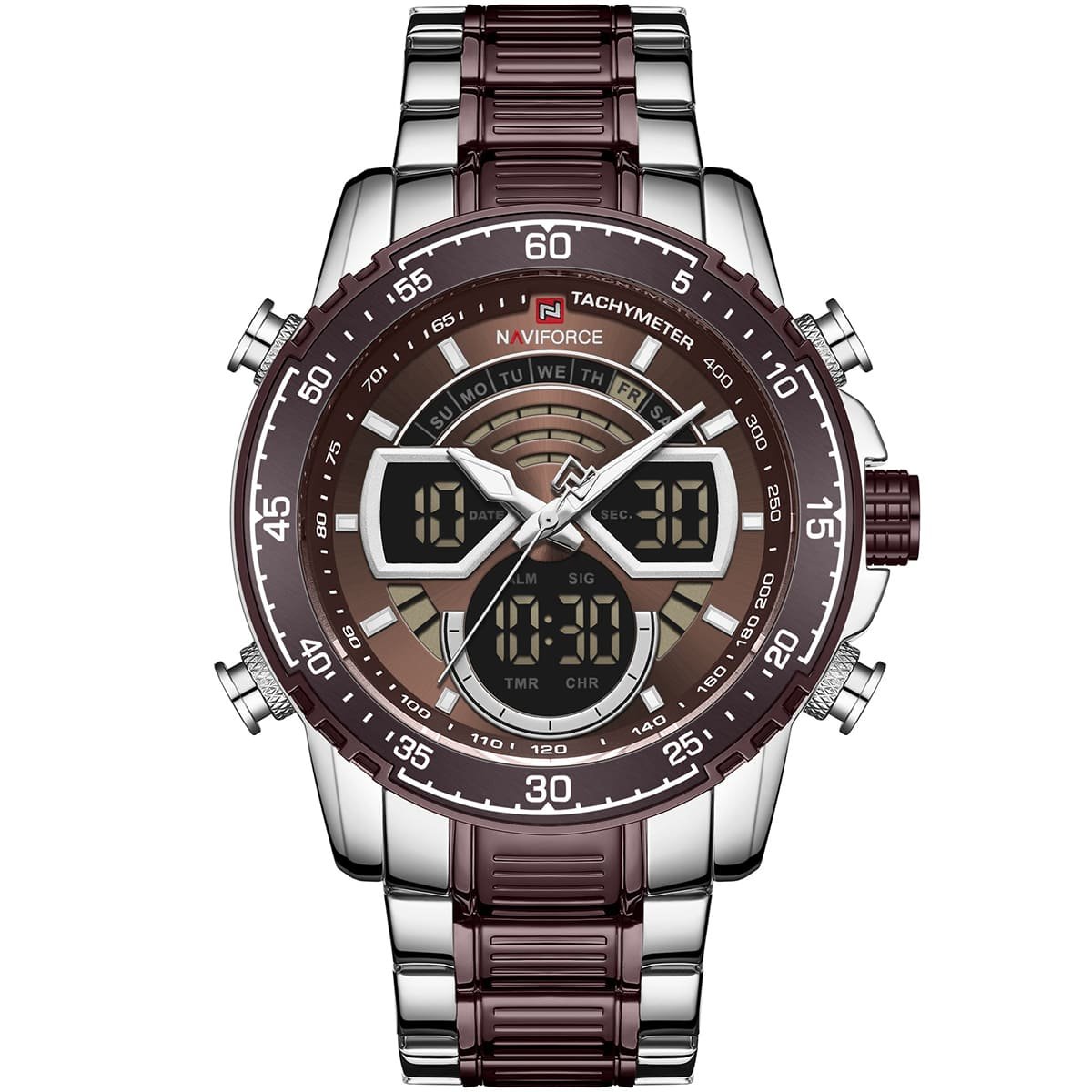 ساعة يد نافي فورس Naviforce NF9189 S CE رجالي أصلية موديل ( NF9189 ) نظرية و رقمية بلون مينا بني غامق و استيك معدن بلون بني و فضي احصل عليها غدا خلال 24 ساعة داخل القاهرة و الجيزة و الاسكندرية