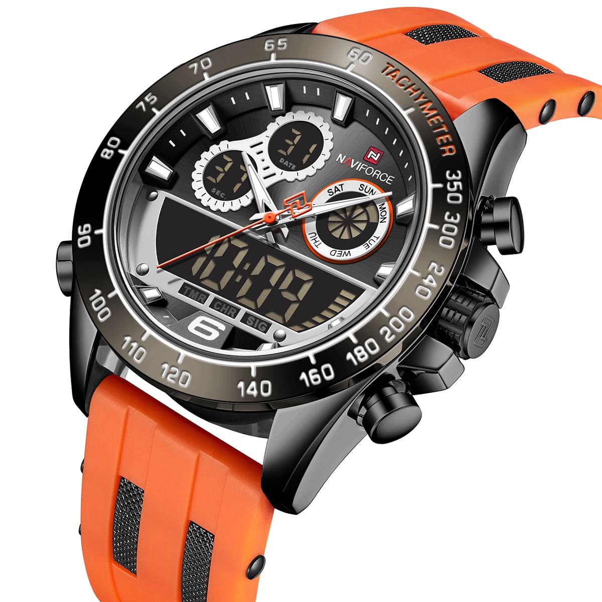ساعة يد نافي فورس Naviforce NF9188T B B O رجالي أصلية موديل ( NF9188T ) نظرية و رقمية بلون مينا اسود و استيك سيليكون مطاط بلون برتقالي احصل عليها غدا خلال 24 ساعة داخل القاهرة و الجيزة و الاسكندرية