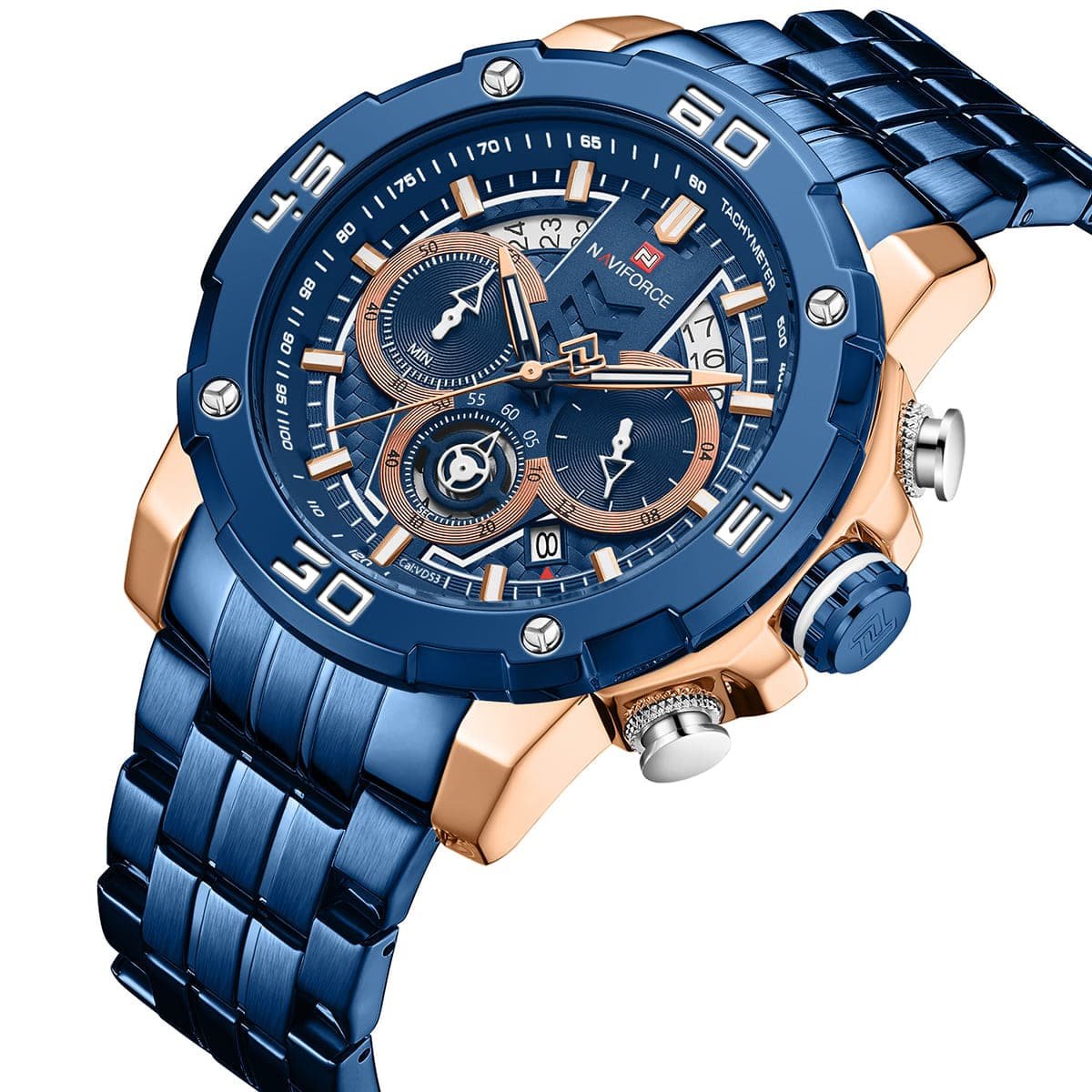 ساعة يد نافي فورس Naviforce NF9175 RG BE رجالي أصلية موديل ( NF9175 ) نظريةبلون مينا ازرق و استيك معدن بلون ازرق احصل عليها غدا خلال 24 ساعة داخل القاهرة و الجيزة و الاسكندرية