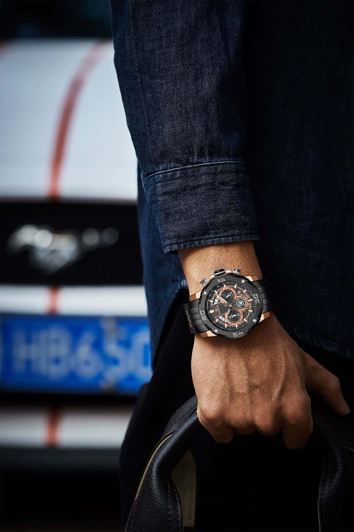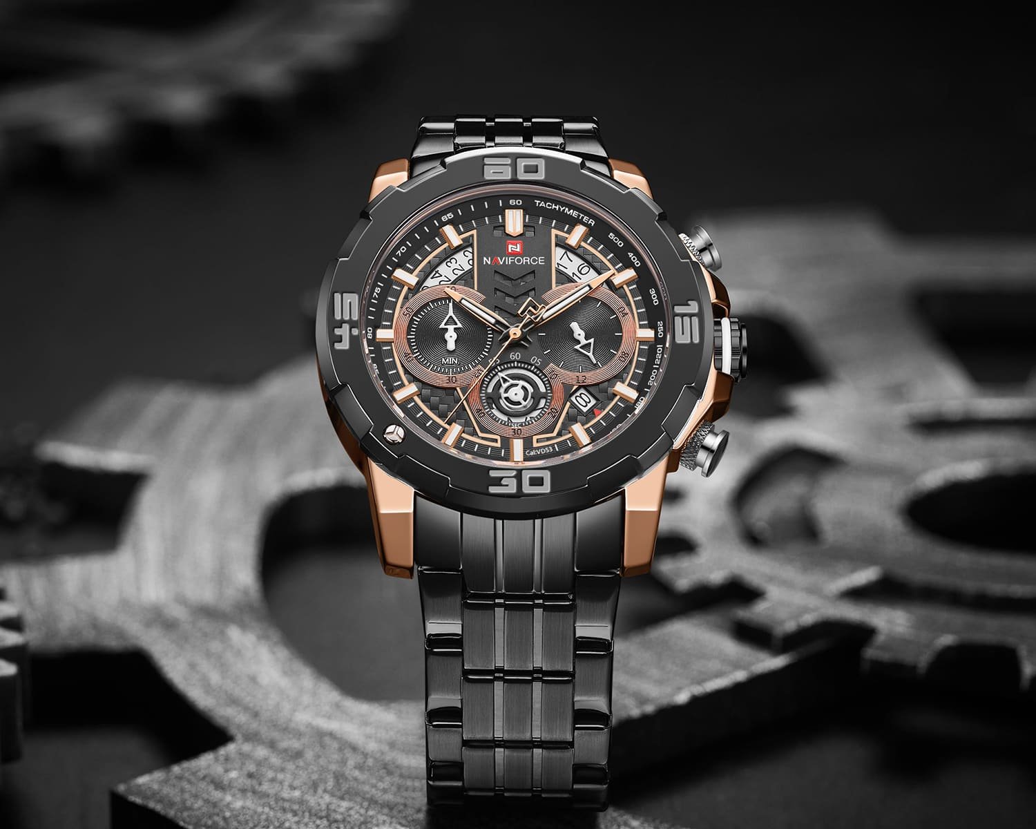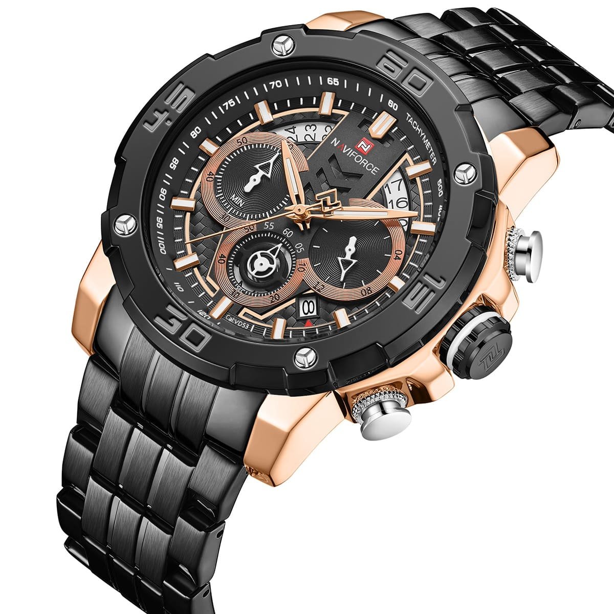 ساعة يد نافي فورس Naviforce NF9175 RG B رجالي أصلية موديل ( NF9175 ) نظريةبلون مينا اسود و استيك معدن بلون اسود احصل عليها غدا خلال 24 ساعة داخل القاهرة و الجيزة و الاسكندرية