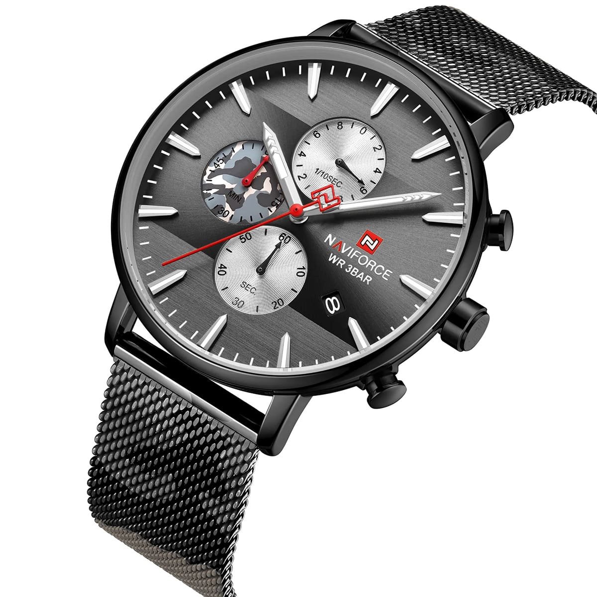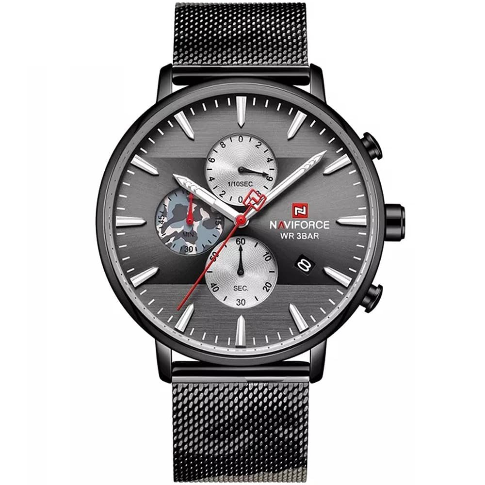ساعة يد نافي فورس Naviforce NF9169 CF B رجالي أصلية موديل ( NF9169 ) نظرية بلون مينا اسود و استيك معدن بلون رمادي و اسود احصل عليها غدا خلال 24 ساعة داخل القاهرة و الجيزة و الاسكندرية