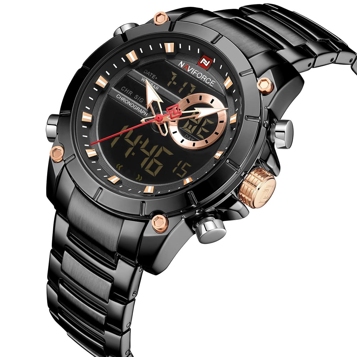 ساعة يد نافي فورس Naviforce NF9163 B B رجالي أصلية موديل ( NF9163 ) نظرية و رقميةبلون مينا اسود و استيك معدن بلون اسود احصل عليها غدا خلال 24 ساعة داخل القاهرة و الجيزة و الاسكندرية