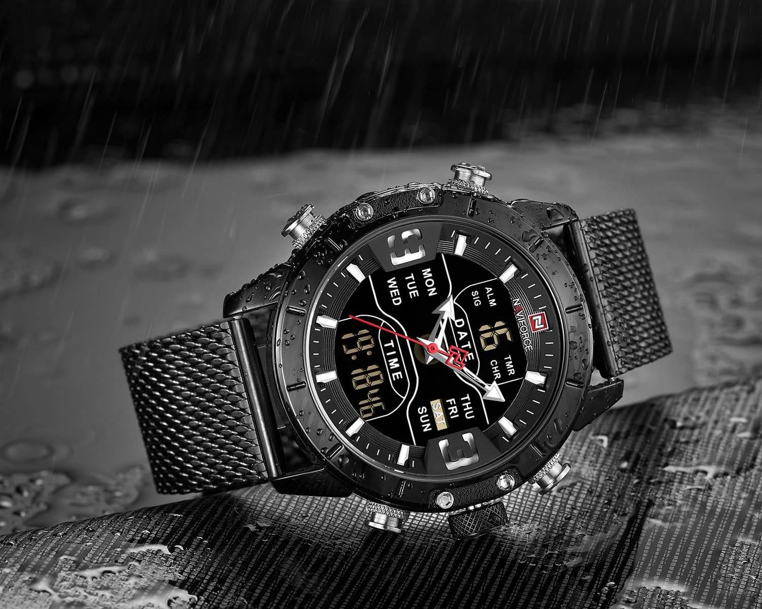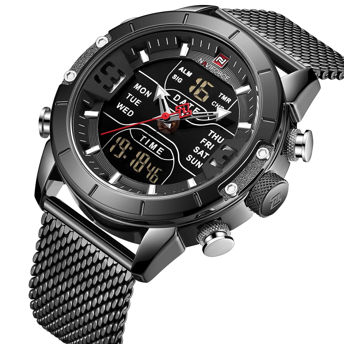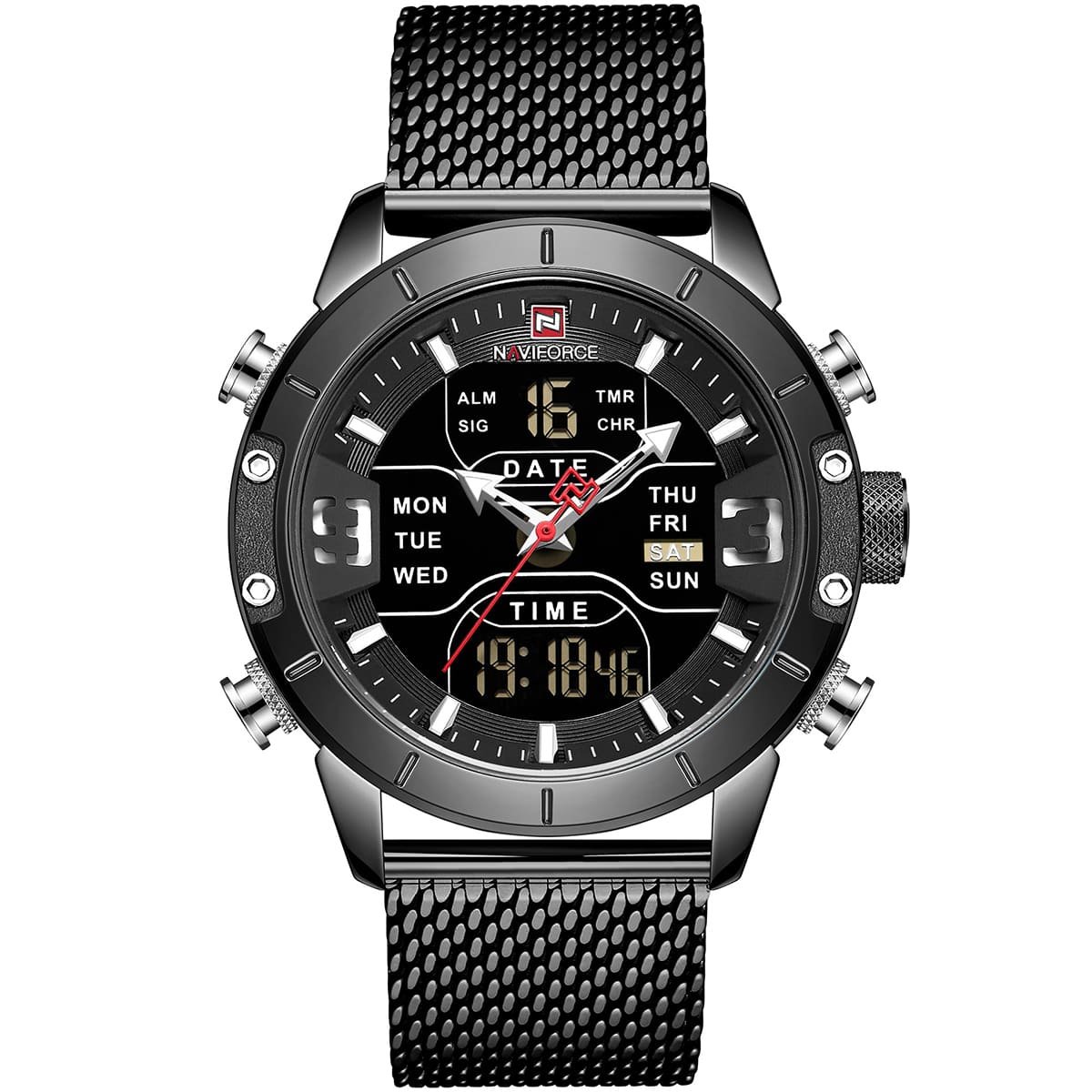 ساعة يد نافي فورس Naviforce NF9153S B B رجالي أصلية موديل ( NF9153S ) نظرية و رقمية بلون مينا اسود و استيك معدن بلون اسود احصل عليها غدا خلال 24 ساعة داخل القاهرة و الجيزة و الاسكندرية
