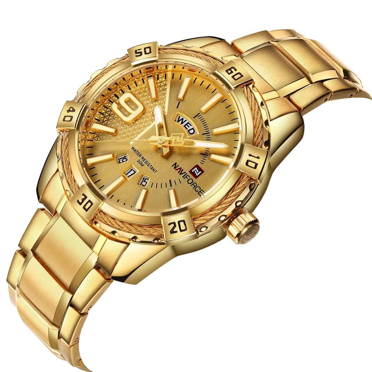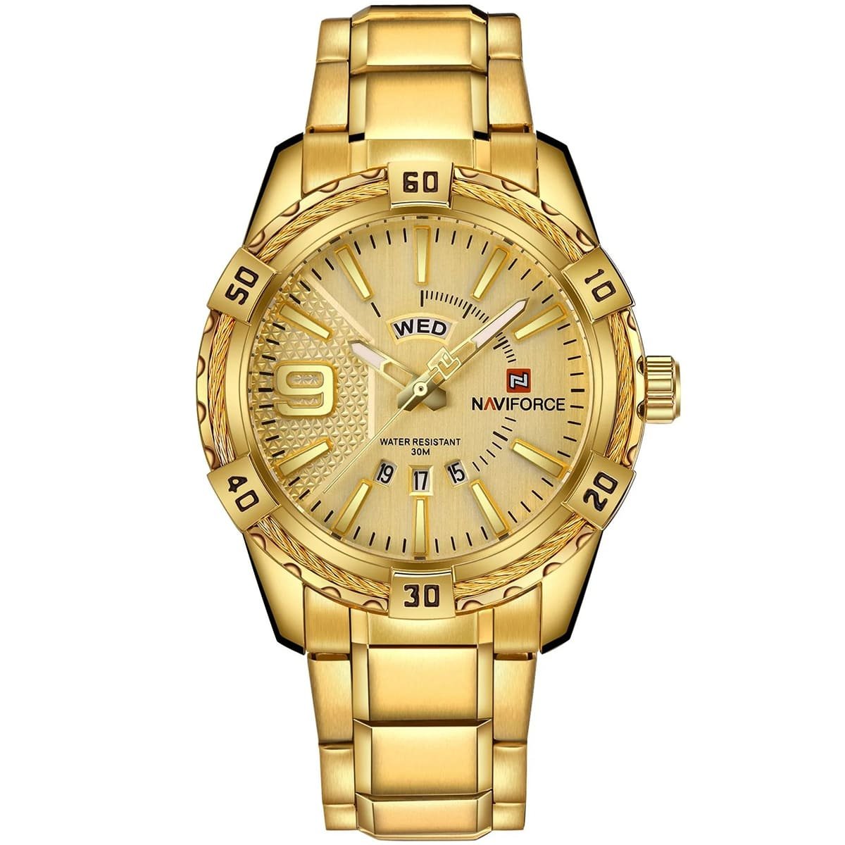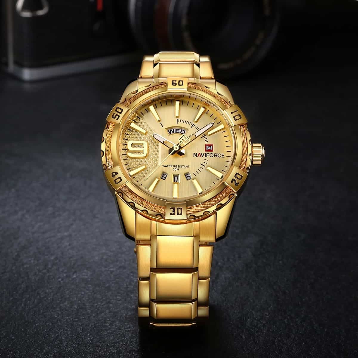 ساعة يد نافي فورس Naviforce NF9117S G G رجالي أصلية موديل ( NF9117S ) نظرية بلون مينا ذهبي و استيك معدن بلون ذهبي احصل عليها غدا خلال 24 ساعة داخل القاهرة و الجيزة و الاسكندرية