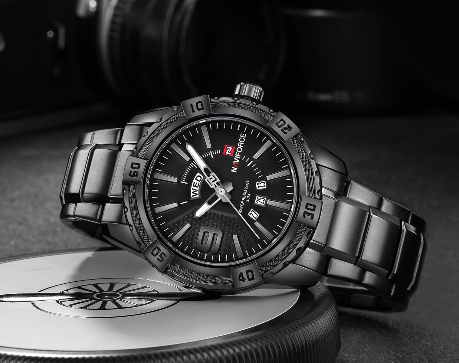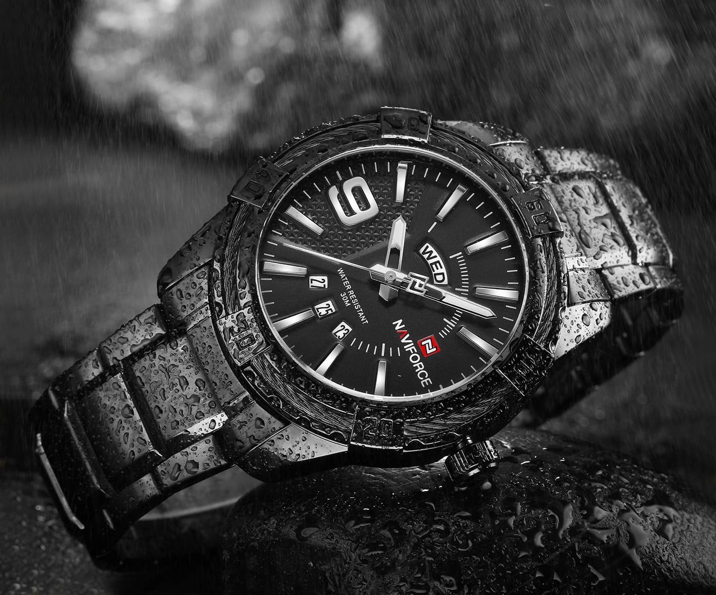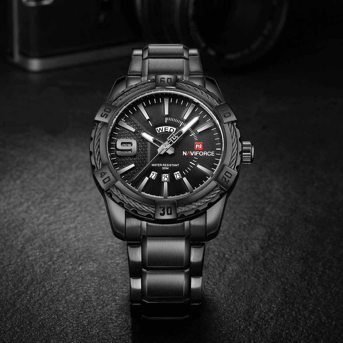 ساعة يد نافي فورس Naviforce NF9117S B B رجالي أصلية موديل ( NF9117S ) نظرية بلون مينا اسود و استيك معدن بلون اسود احصل عليها غدا خلال 24 ساعة داخل القاهرة و الجيزة و الاسكندرية