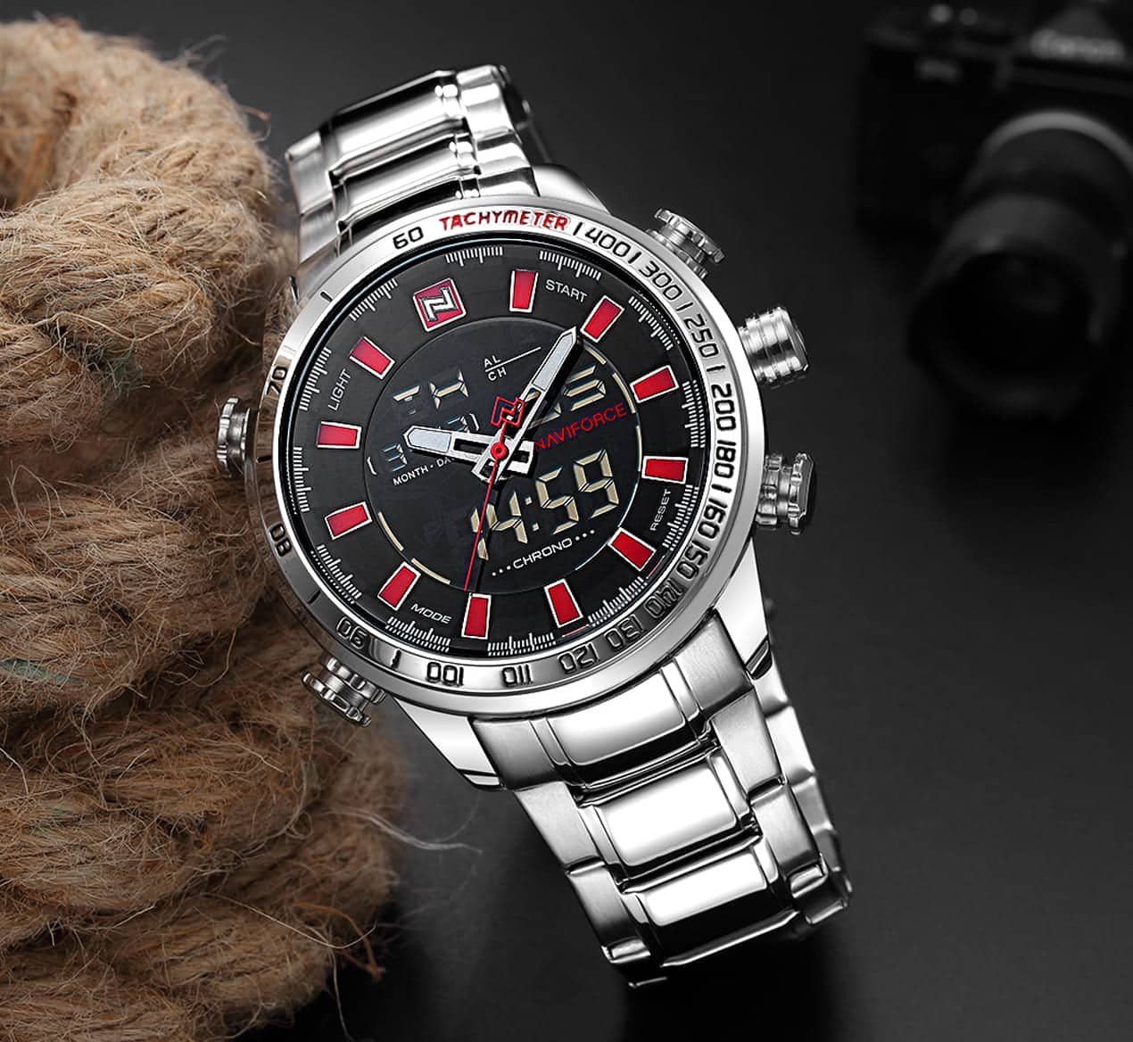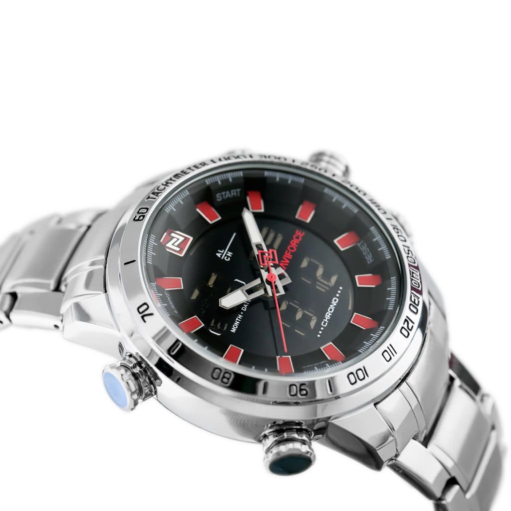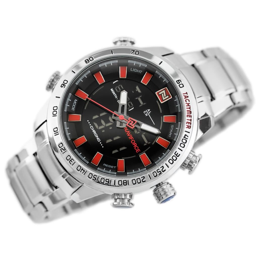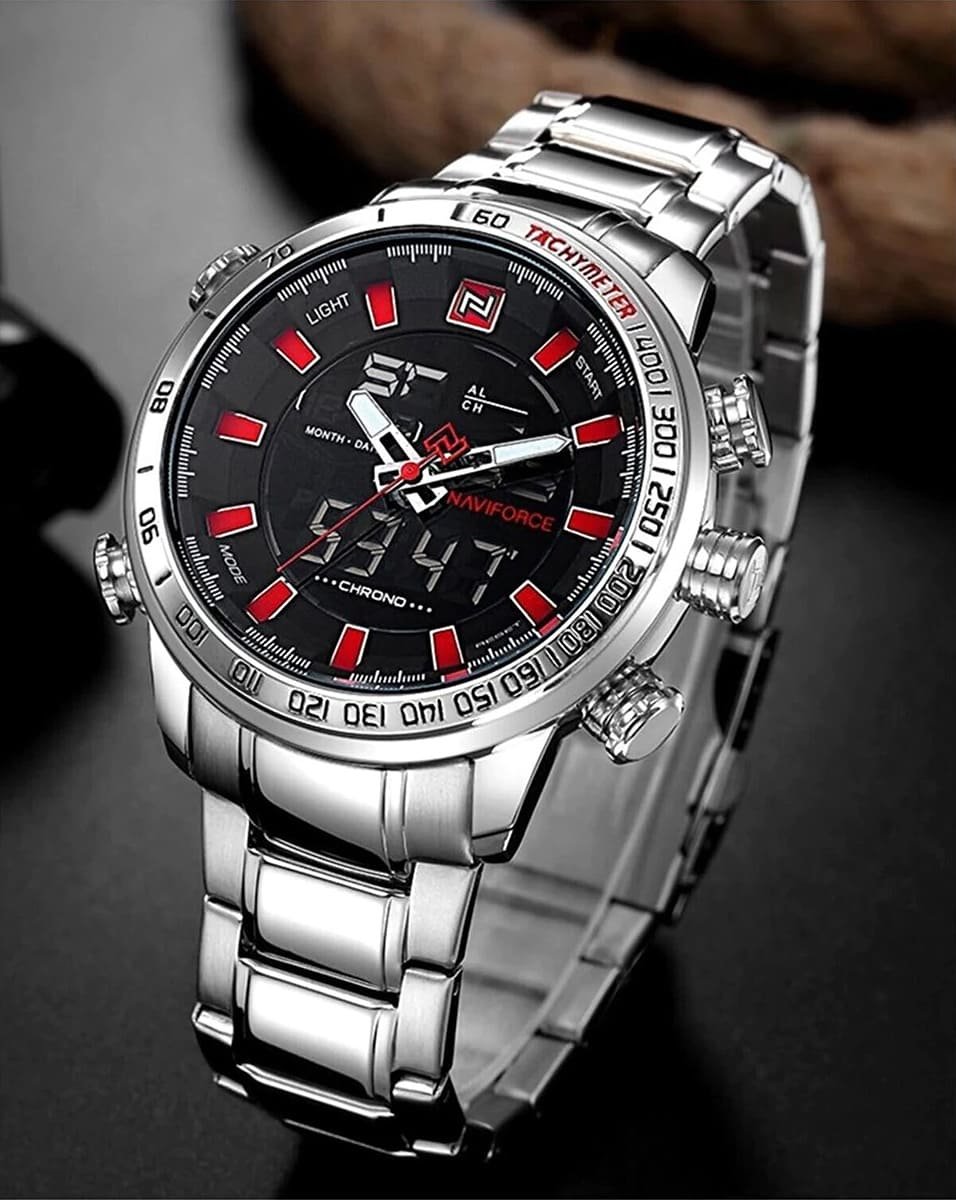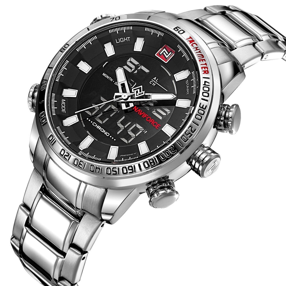 ساعة يد نافي فورس Naviforce NF9093 S B R رجالي أصلية موديل ( NF9093 ) نظرية و رقمية بلون مينا اسود و استيك معدن بلون فضي احصل عليها غدا خلال 24 ساعة داخل القاهرة و الجيزة و الاسكندرية