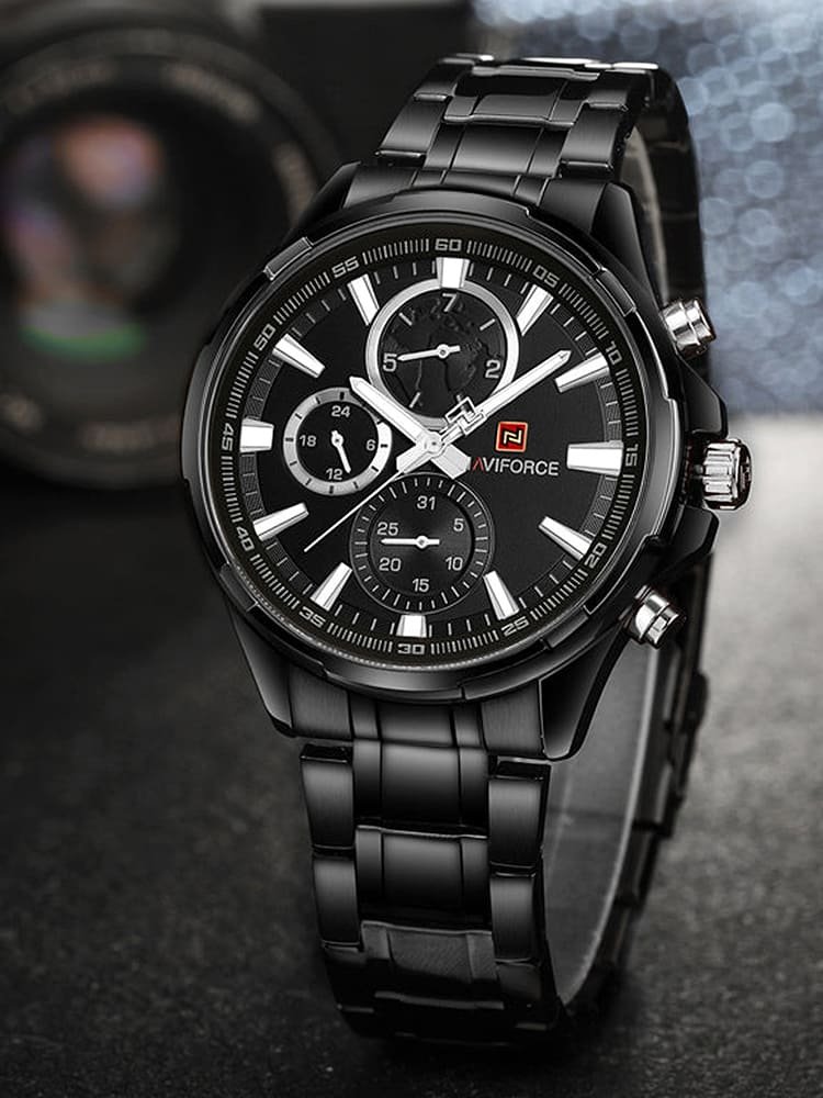 ساعة يد نافي فورس Naviforce NF9089S B B رجالي أصلية موديل ( NF9089S ) نظريةبلون مينا اسود و استيك معدن بلون اسود احصل عليها غدا خلال 24 ساعة داخل القاهرة و الجيزة و الاسكندرية