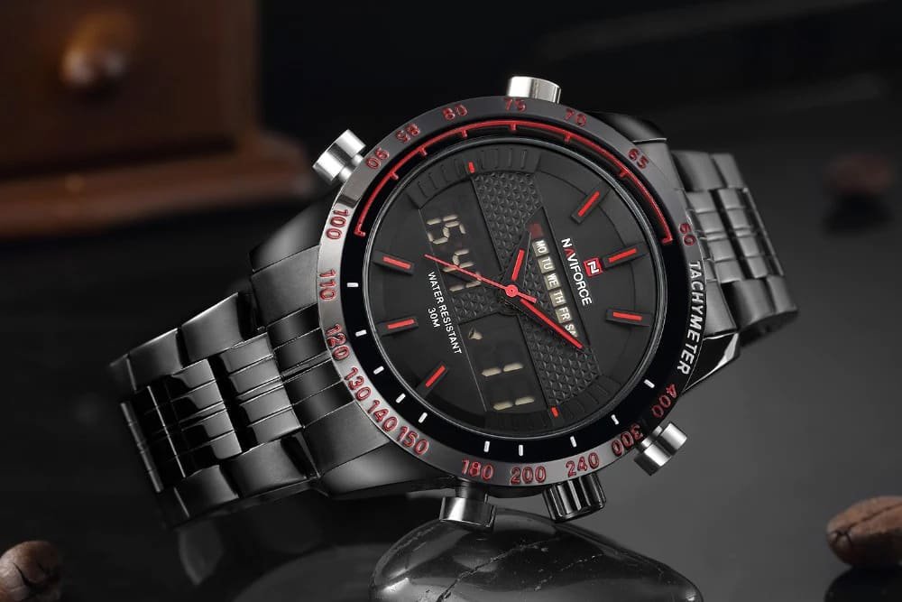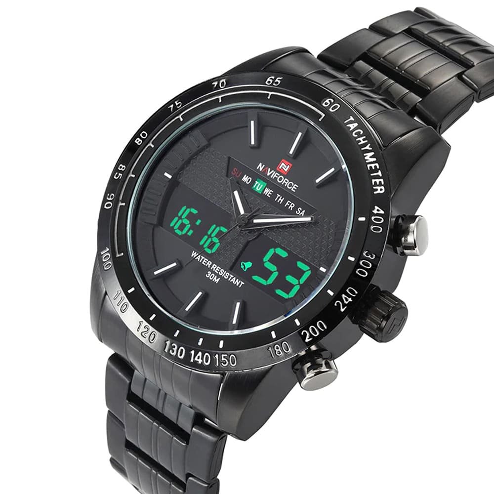 ساعة يد نافي فورس Naviforce NF9024 B B W رجالي أصلية موديل ( NF9024 ) نظرية و رقمية بلون مينا اسود و استيك معدن بلون اسود احصل عليها غدا خلال 24 ساعة داخل القاهرة و الجيزة و الاسكندرية