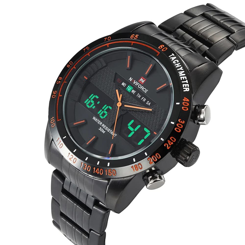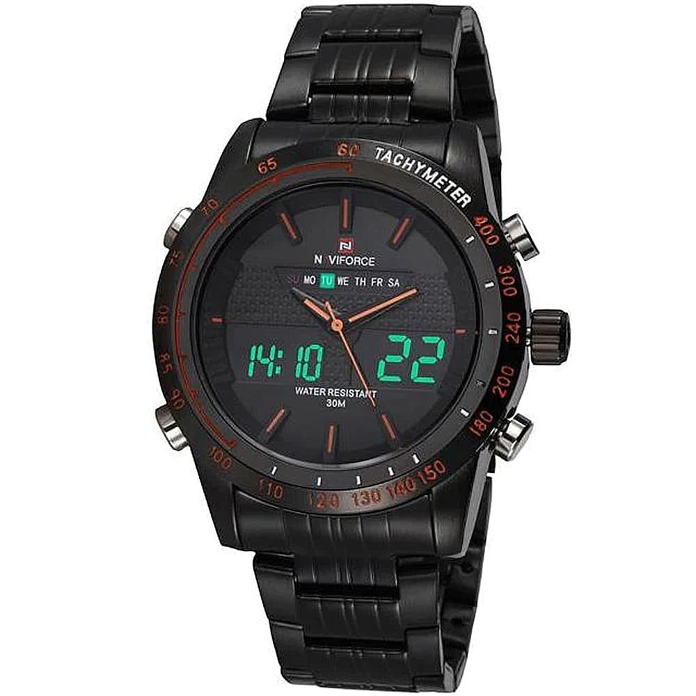 ساعة يد نافي فورس Naviforce NF9024 B B O رجالي أصلية موديل ( NF9024 ) نظرية و رقمية بلون مينا اسود و استيك معدن بلون اسود احصل عليها غدا خلال 24 ساعة داخل القاهرة و الجيزة و الاسكندرية