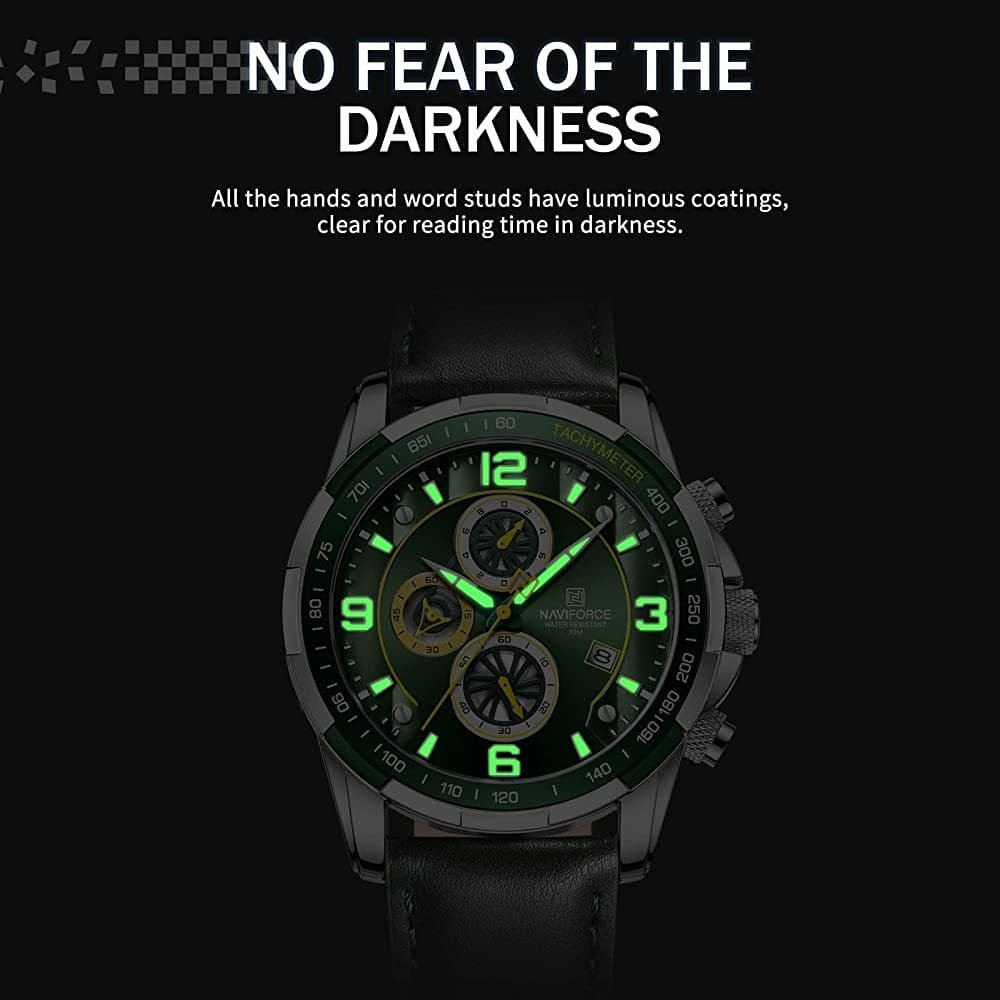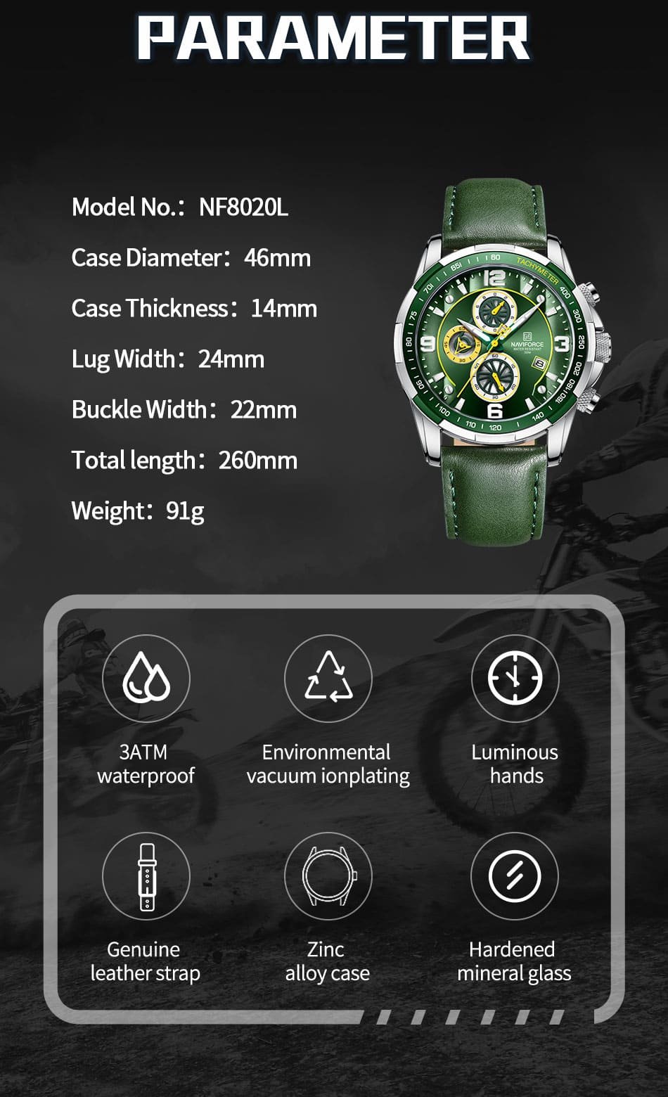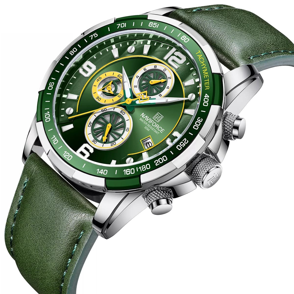 ساعة يد نافي فورس Naviforce NF8020L S GN GN رجالي أصلية موديل ( NF8020L ) نظرية بلون مينا اخضر و استيك جلد بلون اخضر احصل عليها غدا خلال 24 ساعة داخل القاهرة و الجيزة و الاسكندرية