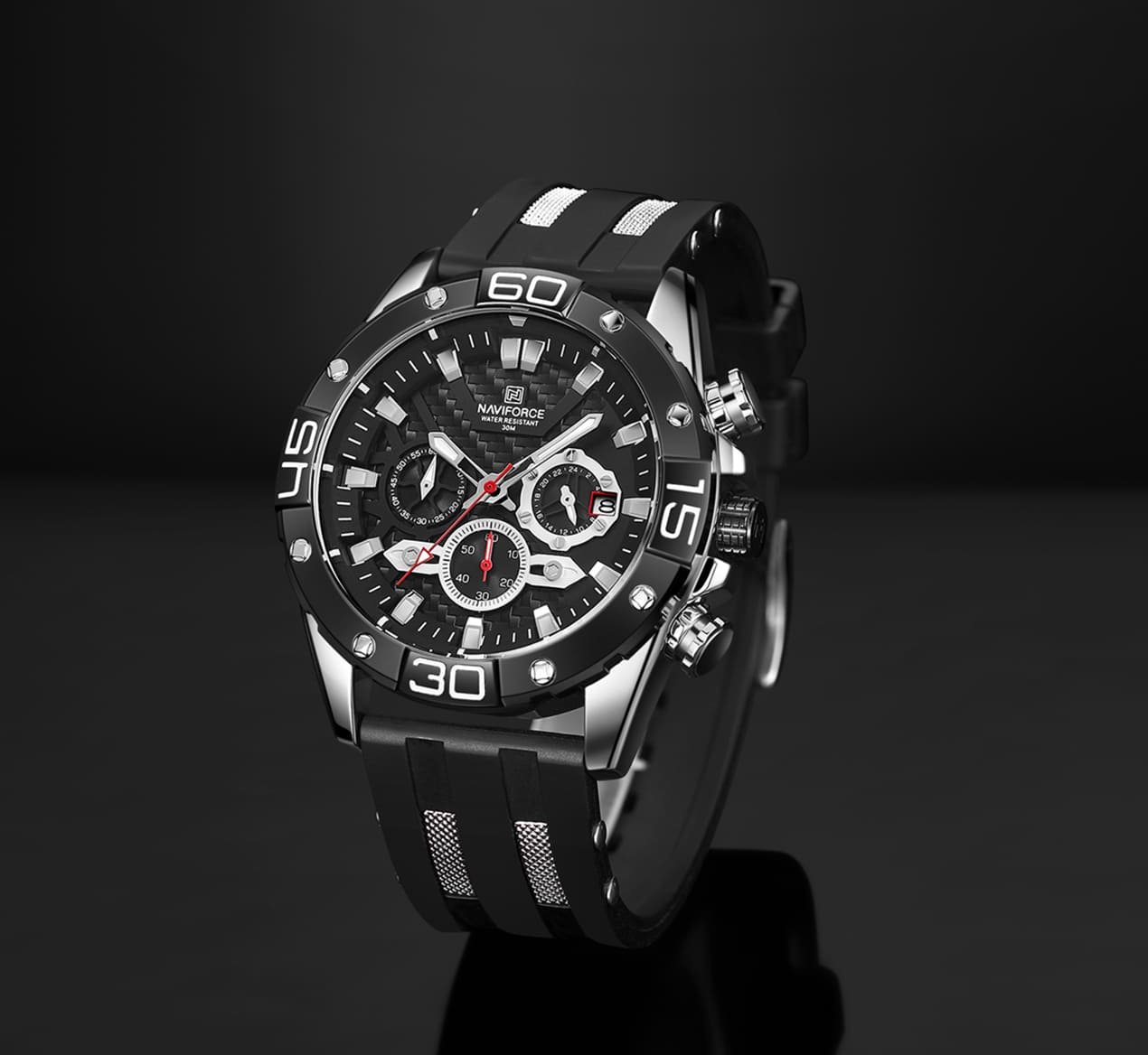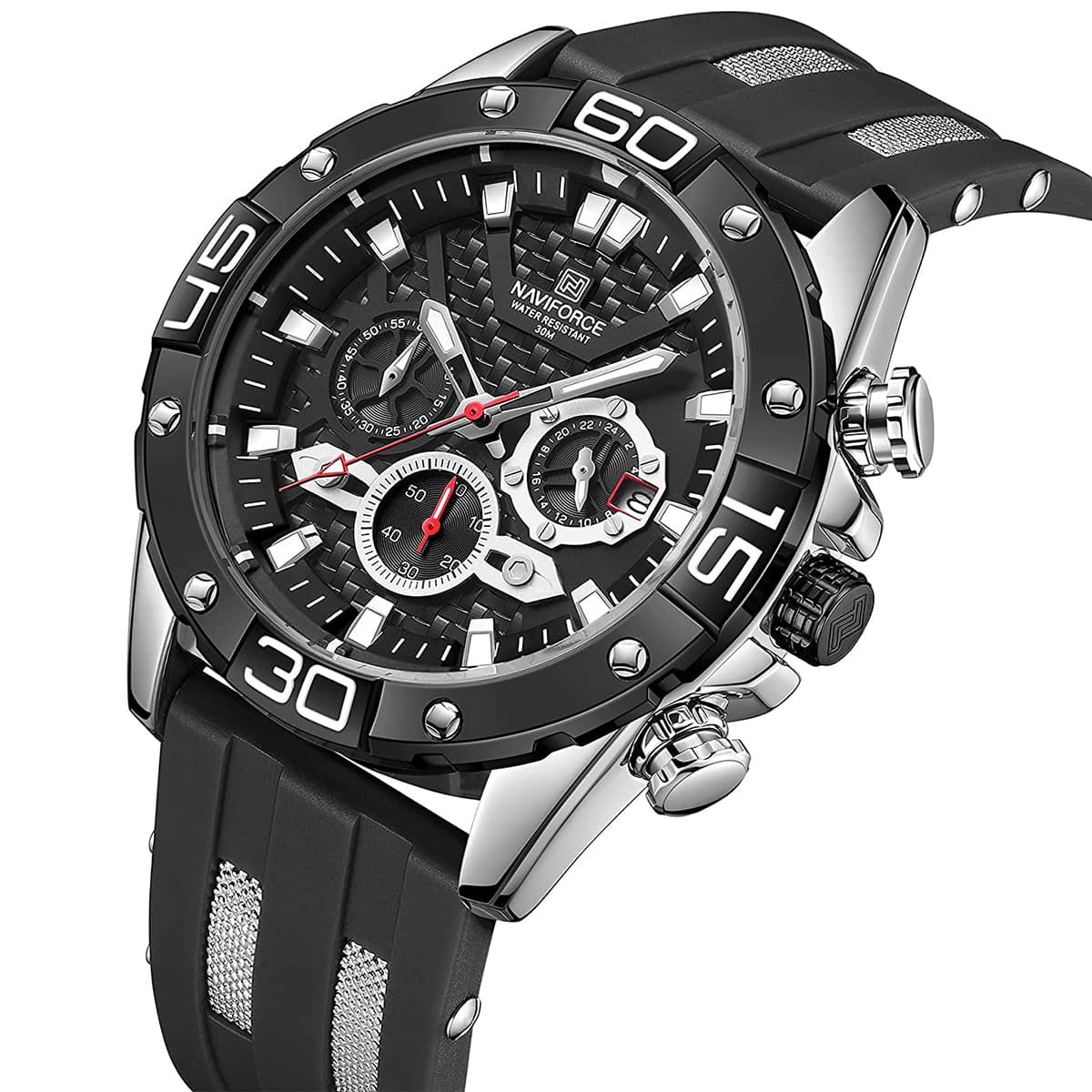ساعة يد نافي فورس Naviforce NF8019T S B B رجالي أصلية موديل ( NF8019T ) نظرية بلون مينا اسود و استيك سيليكون مطاط بلون اسود احصل عليها غدا خلال 24 ساعة داخل القاهرة و الجيزة و الاسكندرية