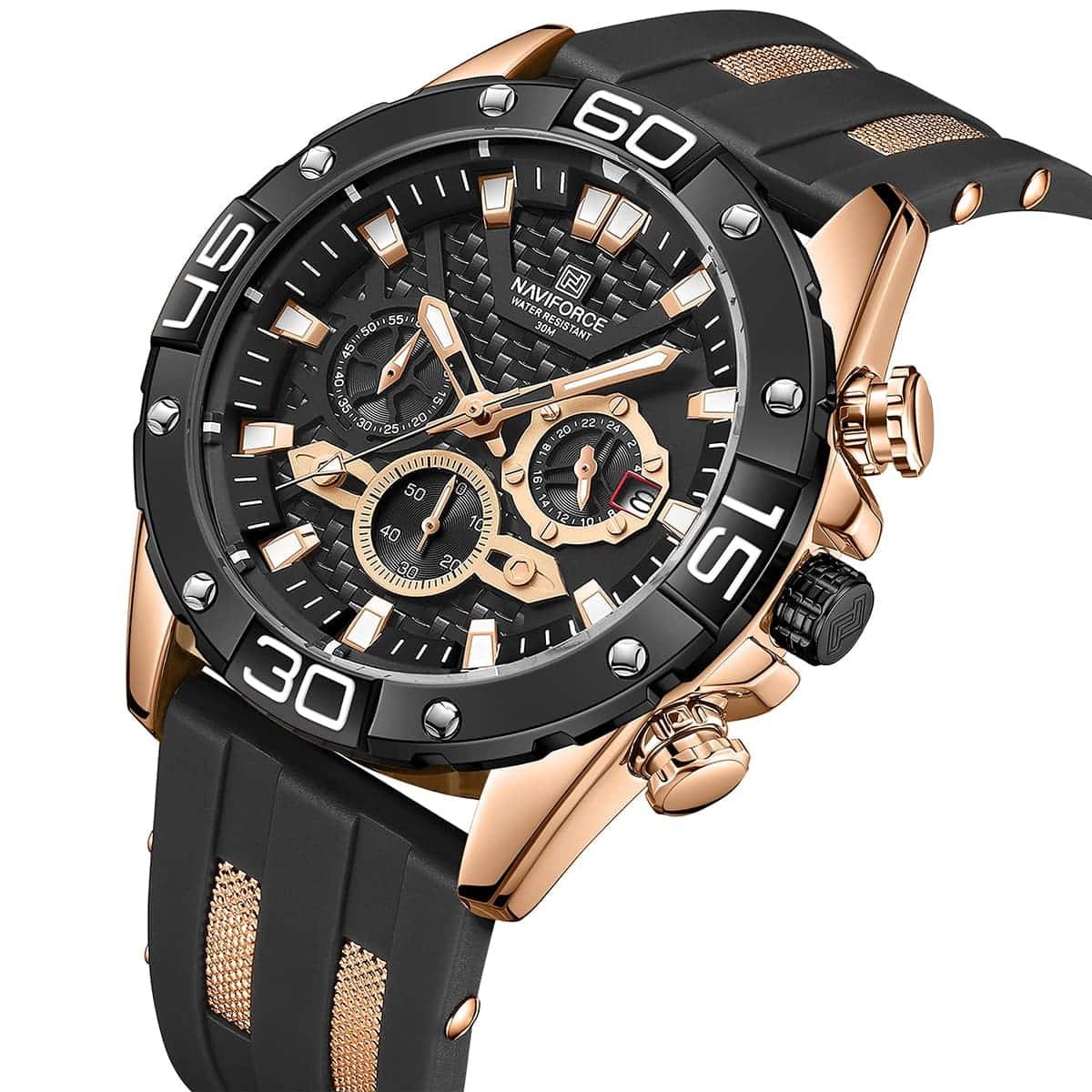 ساعة يد نافي فورس Naviforce NF8019T RG B B رجالي أصلية موديل ( NF8019T ) نظرية بلون مينا اسود و استيك سيليكون مطاط بلون اسود احصل عليها غدا خلال 24 ساعة داخل القاهرة و الجيزة و الاسكندرية