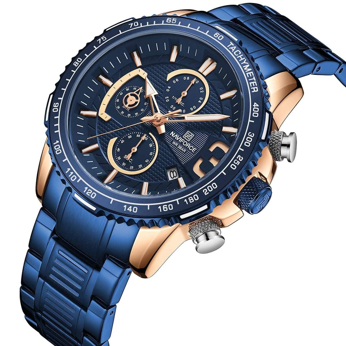 ساعة يد نافي فورس Naviforce NF8017 RG BE رجالي أصلية موديل ( NF8017 ) نظرية بلون مينا ازرق و استيك معدن بلون ازرق احصل عليها غدا خلال 24 ساعة داخل القاهرة و الجيزة و الاسكندرية
