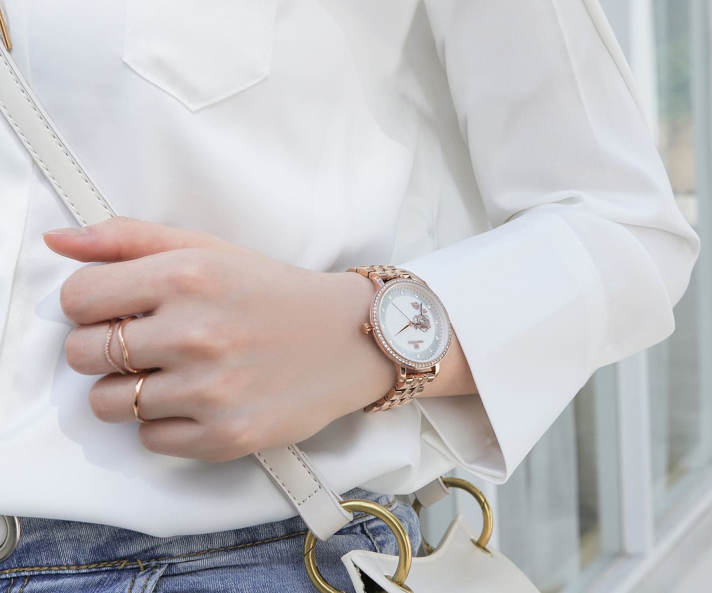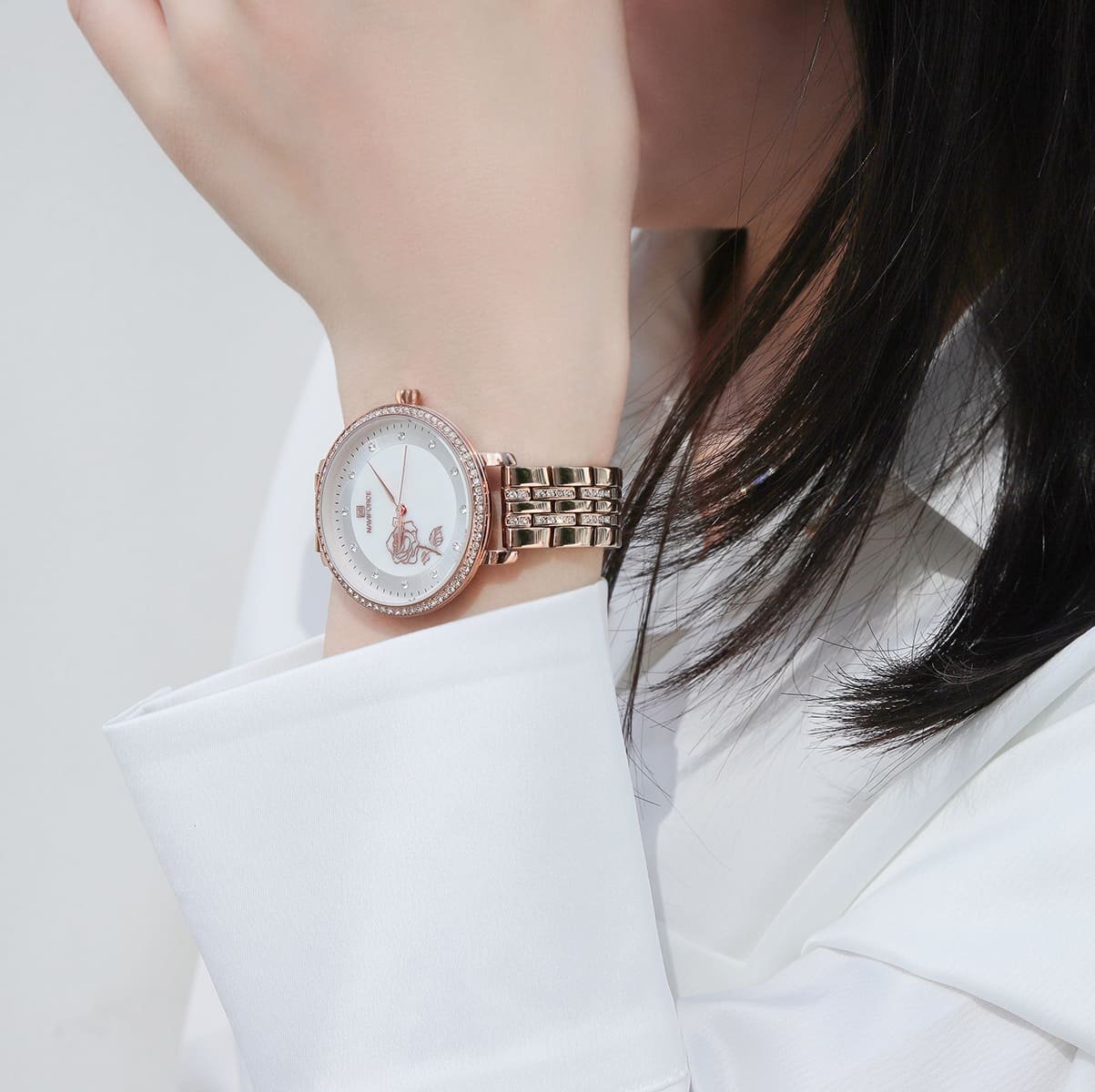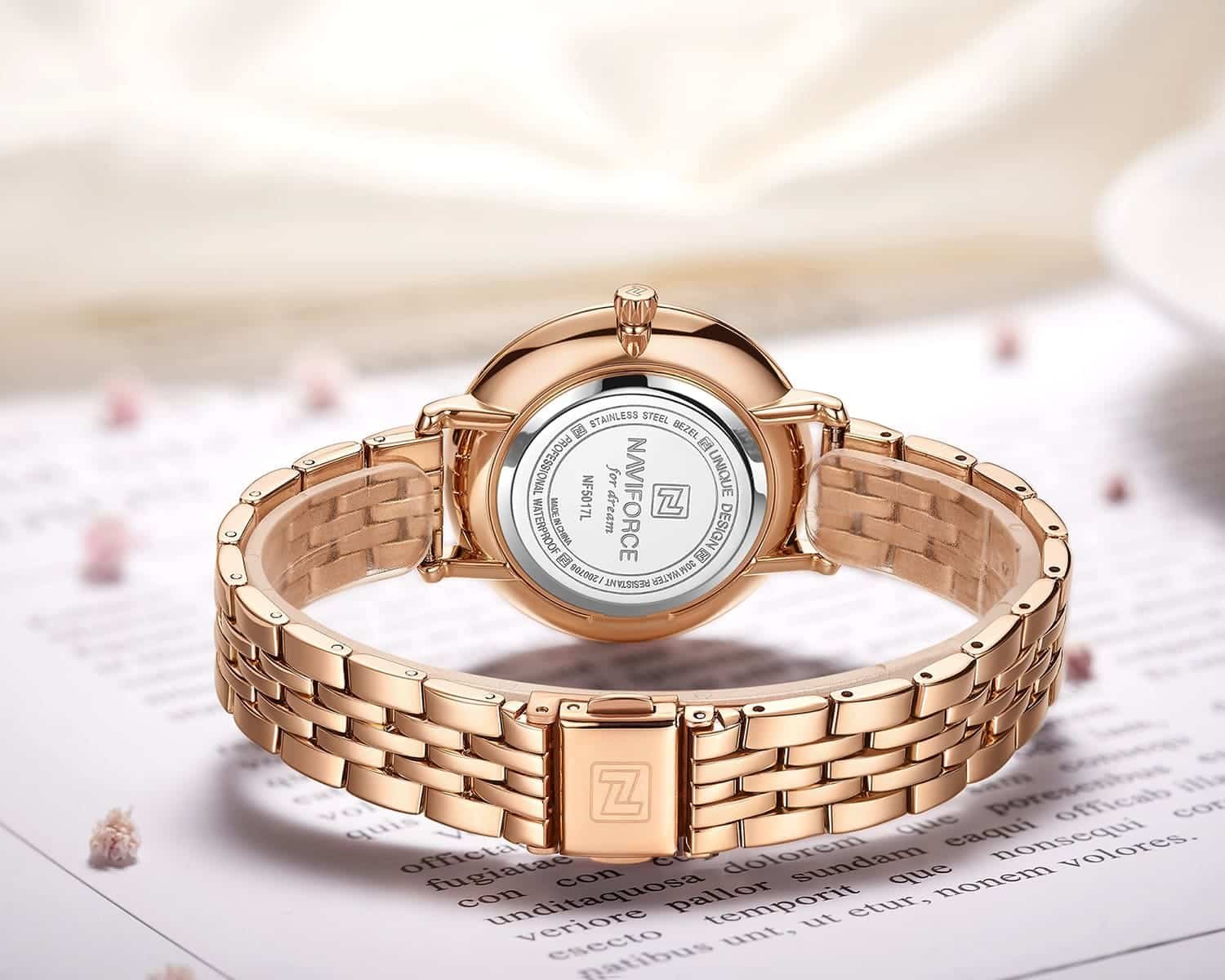 ساعة نافي فورس حريمي NF5017-RG-W