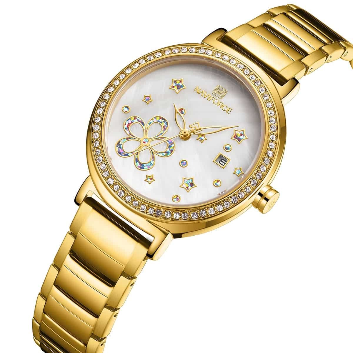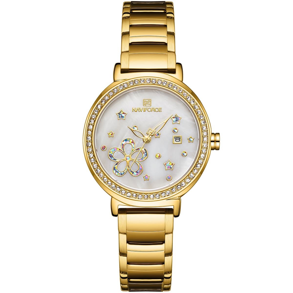 ساعة يد نافي فورس Naviforce NF5016 G W حريمي أصلية موديل ( NF5016 ) نظرية بلون مينا ابيض و استيك معدن بلون ذهبي احصل عليها غدا خلال 24 ساعة داخل القاهرة و الجيزة و الاسكندرية