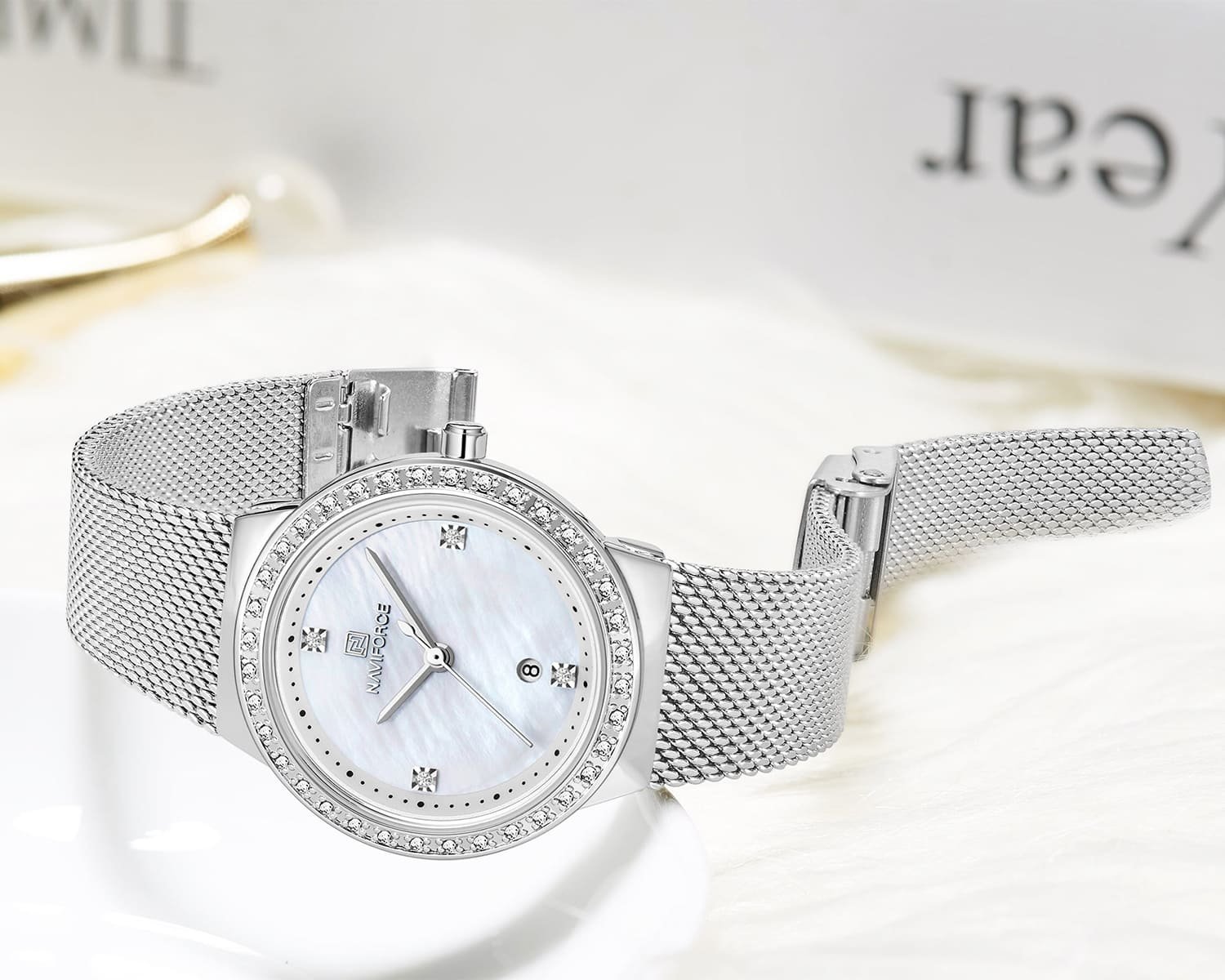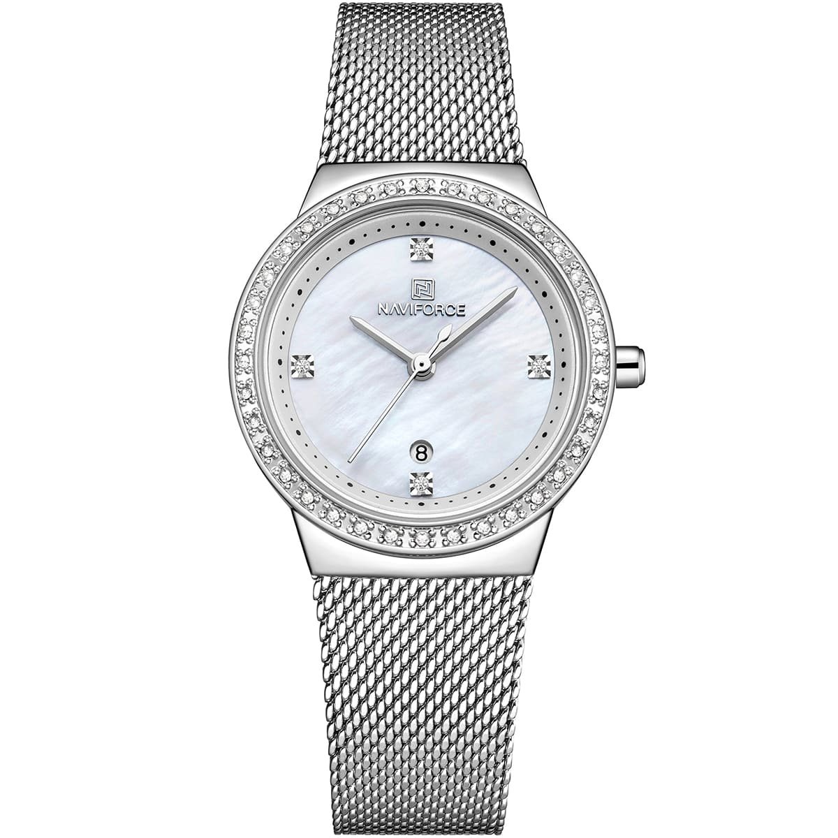 ساعة يد نافي فورس Naviforce NF5005 S W حريمي أصلية موديل ( NF5005 ) نظريةبلون مينا ابيض و استيك معدن بلون فضي احصل عليها غدا خلال 24 ساعة داخل القاهرة و الجيزة و الاسكندرية