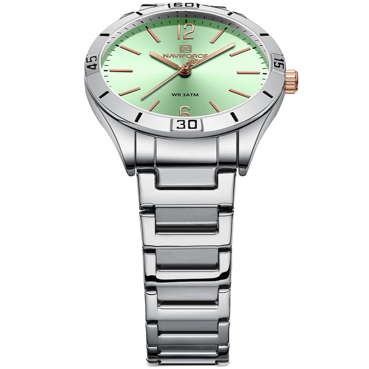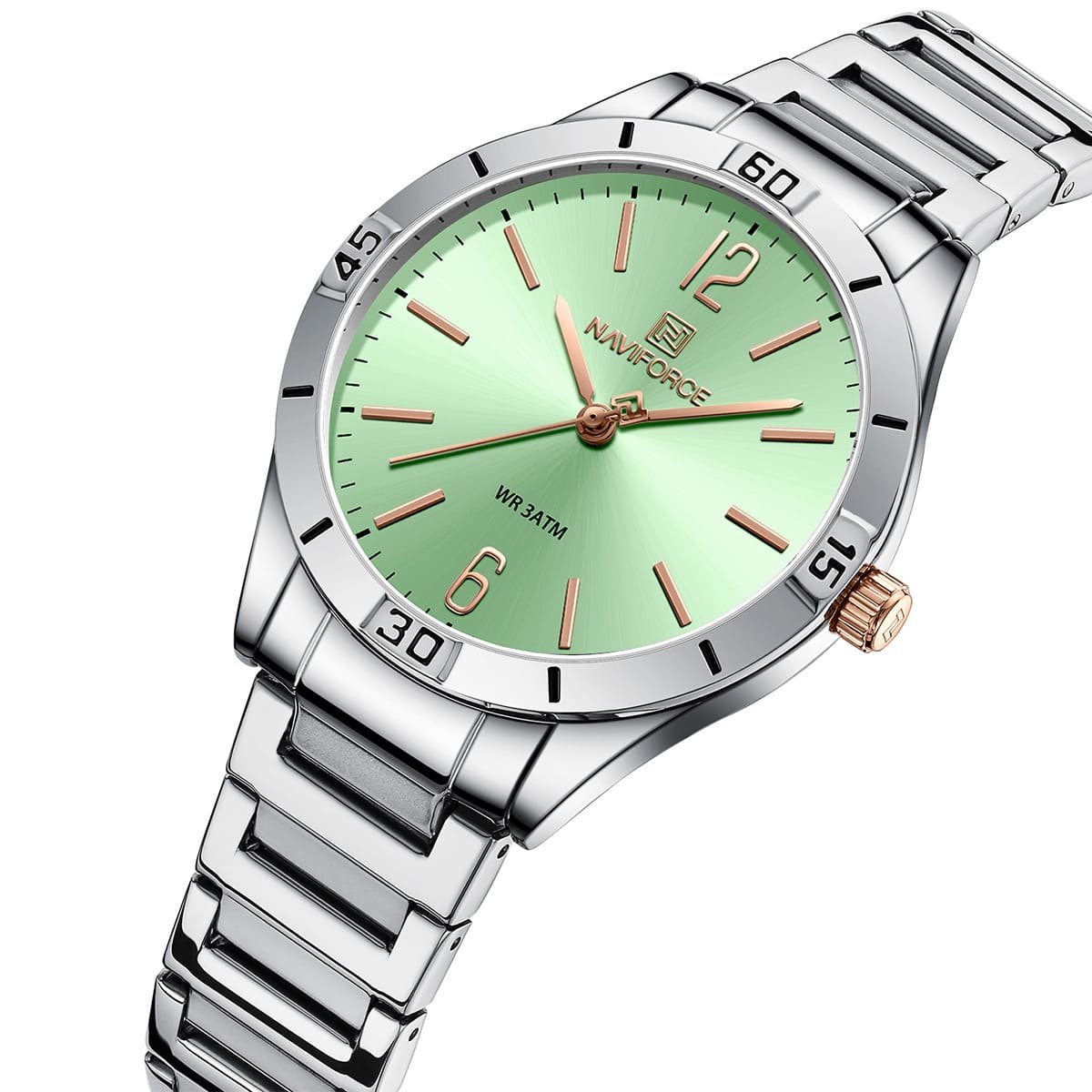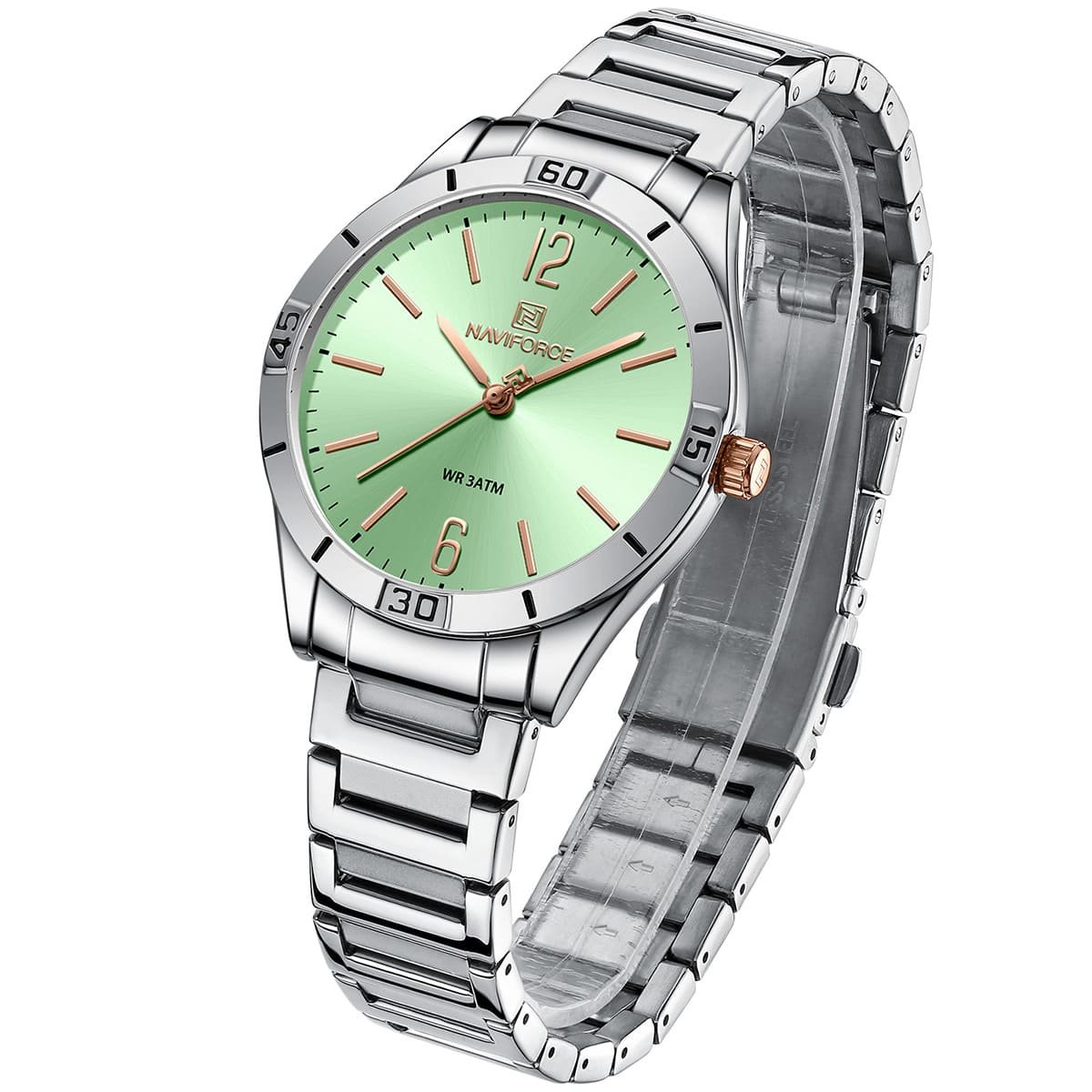 ساعة يد نافي فورس Naviforce NF 5029 S GN حريمي أصلية موديل ( NF5029 ) نظريةبلون مينا اخضر و استيك معدن بلون فضي احصل عليها غدا خلال 24 ساعة داخل القاهرة و الجيزة و الاسكندرية