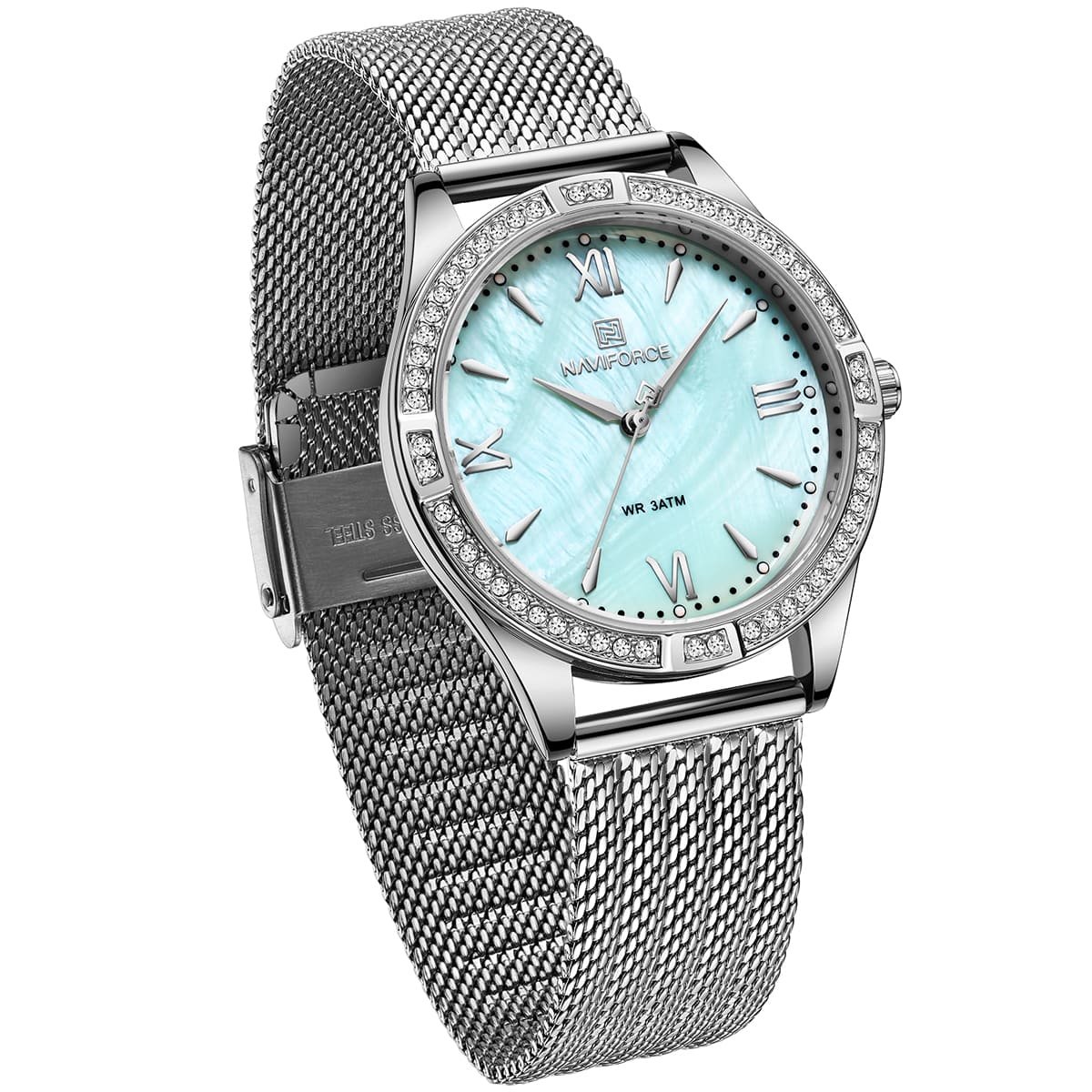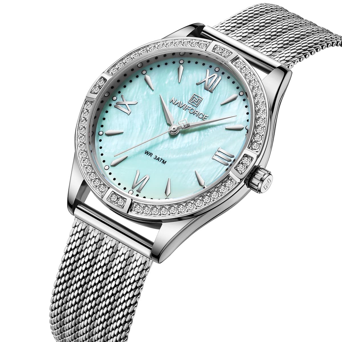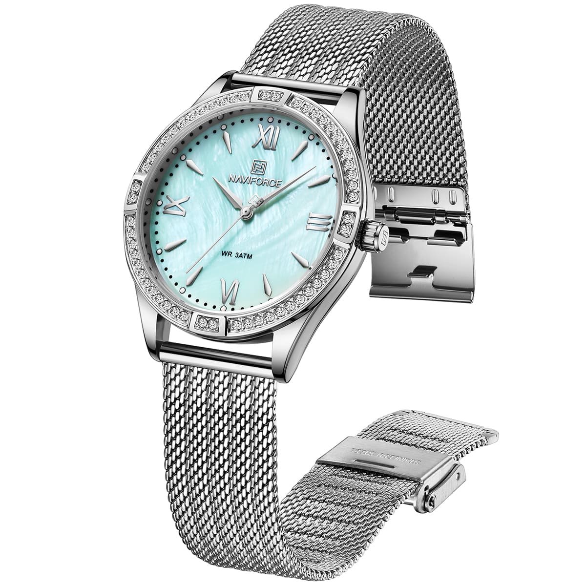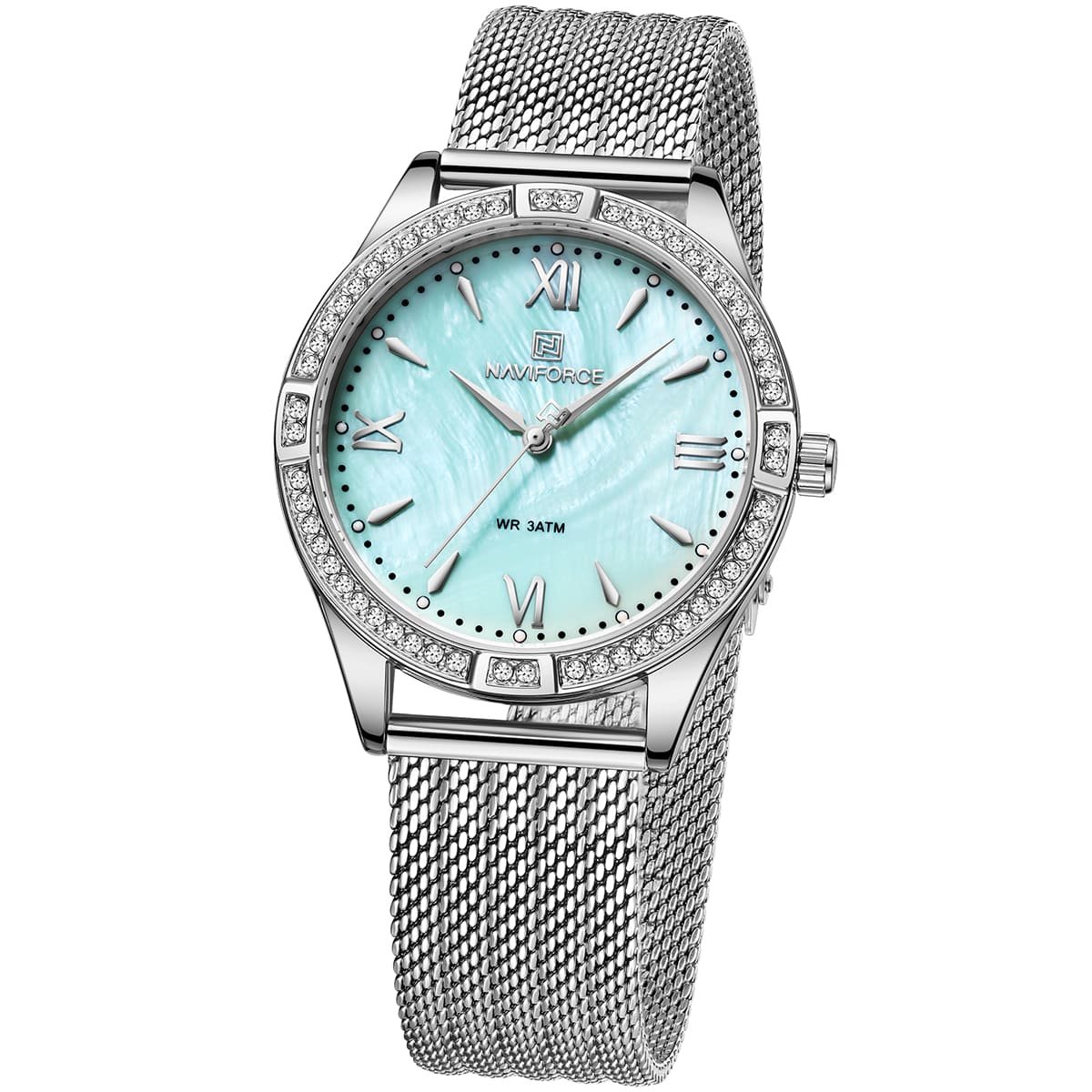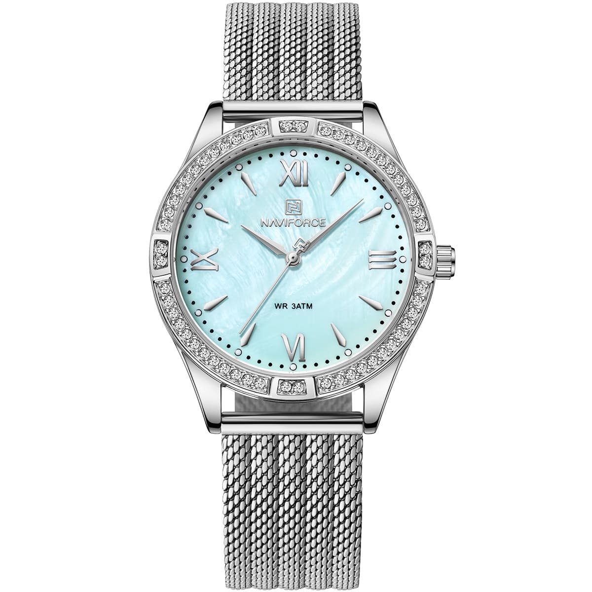 ساعة يد نافي فورس Naviforce NF 5028 S L BE حريمي أصلية موديل ( NF5028 ) نظريةبلون مينا ازرق و استيك معدن بلون فضي احصل عليها غدا خلال 24 ساعة داخل القاهرة و الجيزة و الاسكندرية