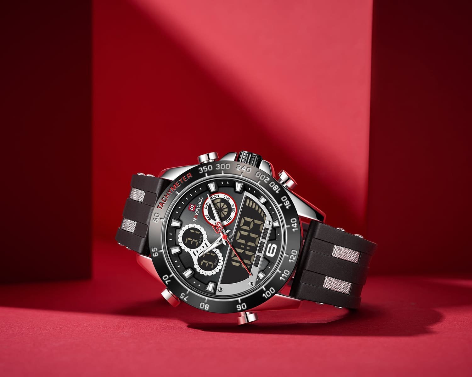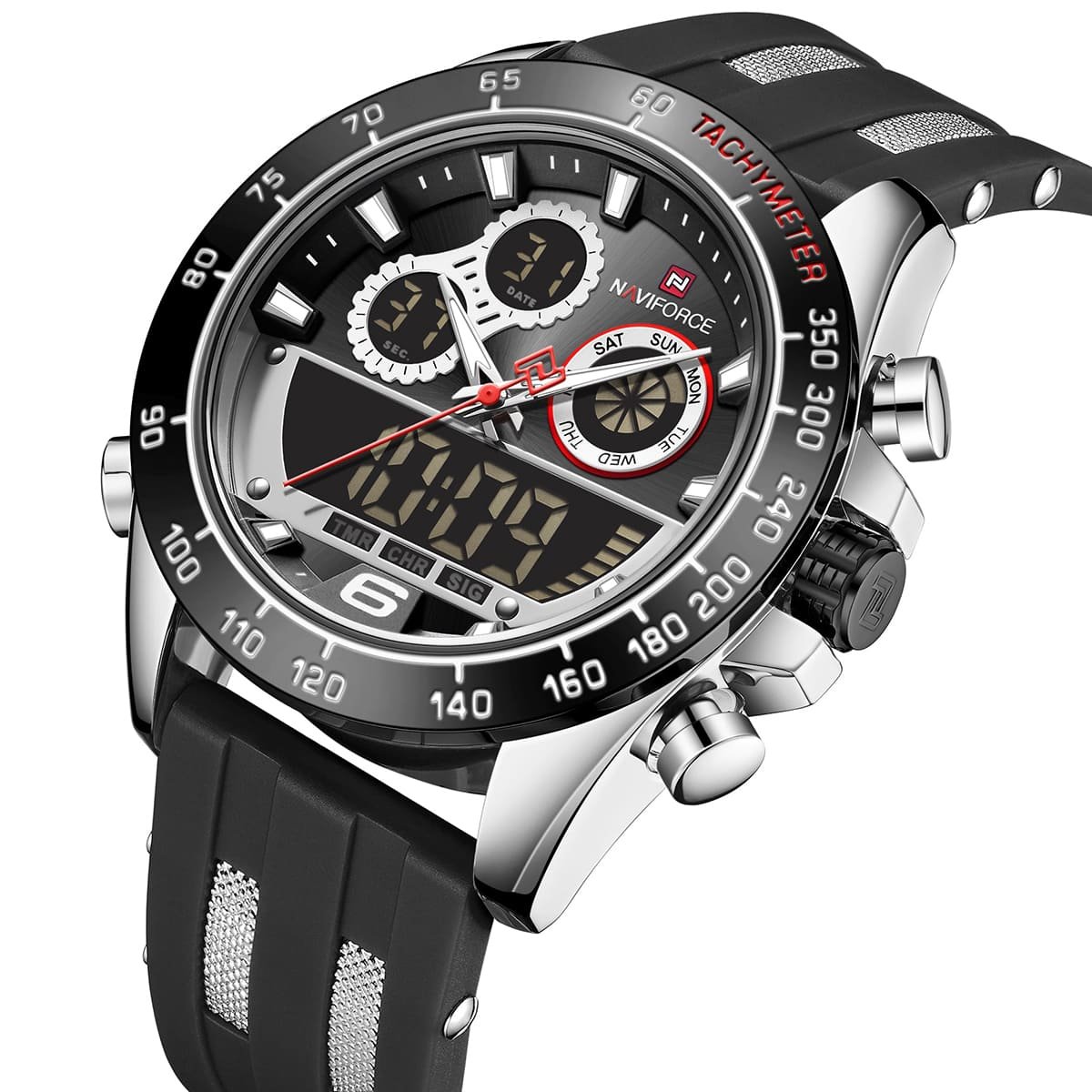 ساعة يد نافي فورس Naviforce NF9188T S B B رجالي أصلية موديل ( NF9188T ) نظرية و رقمية بلون مينا اسود و استيك سيليكون مطاط بلون اسود احصل عليها غدا خلال 24 ساعة داخل القاهرة و الجيزة و الاسكندرية