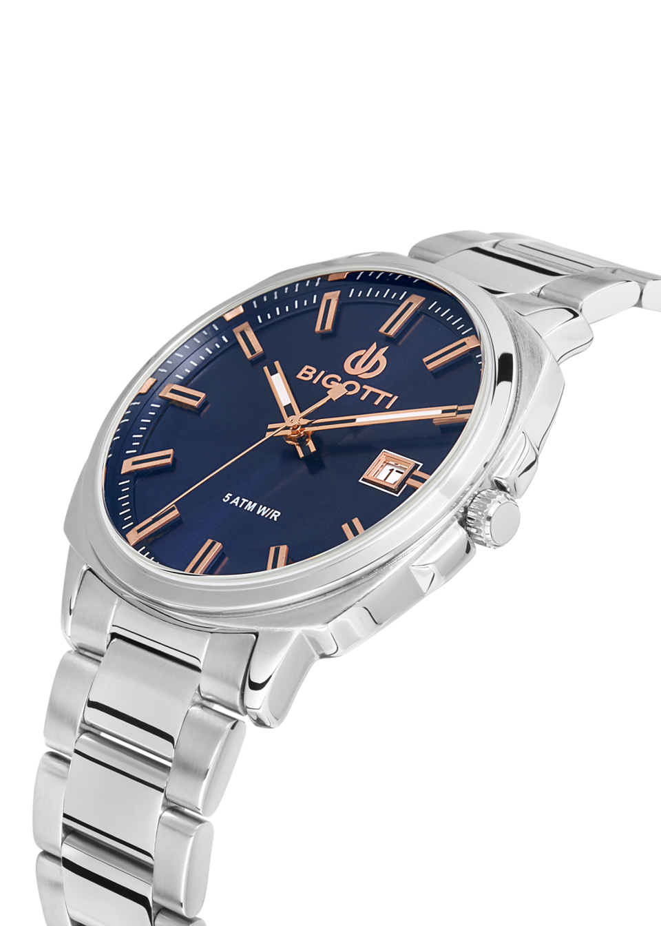 Upgrade your accessory collection with this analog watch from the house of Bigotti Milano. The blue dial and silver Metal Band of this watch for Men offer high quality as well as lightweight feel. Designed to perfection, this watch will go well with formals and casuals too.
