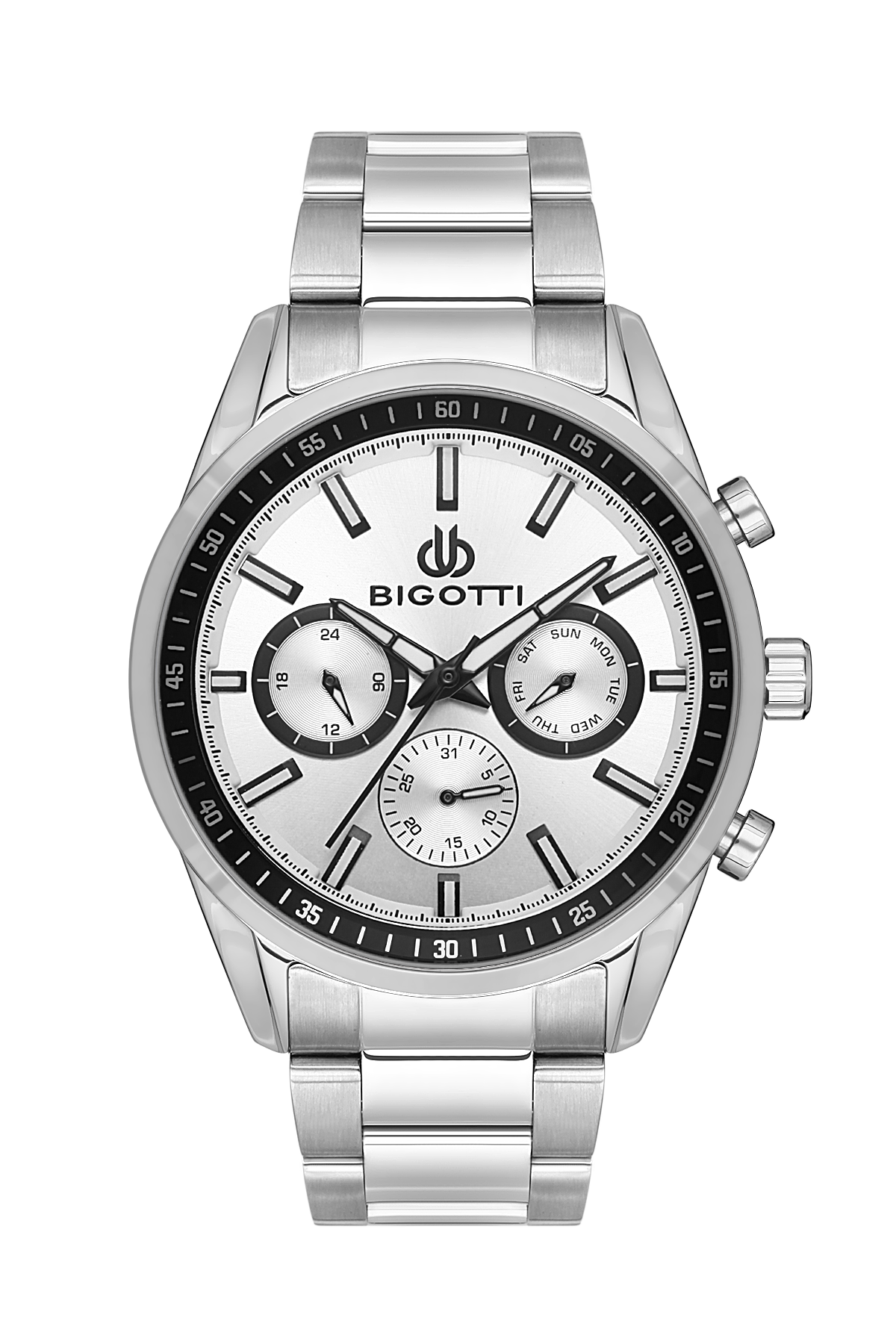 Upgrade your accessory collection with this analog watch from the house of Bigotti Milano. The silver dial and silver Metal Band of this watch for Men offer high quality as well as lightweight feel. Designed to perfection, this watch will go well with formals and casuals too.