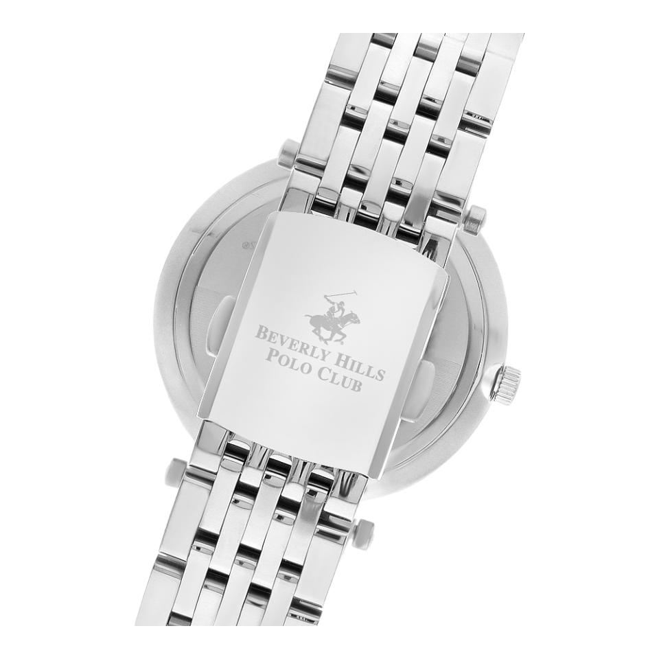 DescriptionInspired by both the luxury and heritage, The Beverly Hills Polo Club Watch with Round Metal case with Analog display, Silver Dial36 mm case diameter, Quartz movement, 5 ATM water-resistantSilver Metal bracelet with Push Button ClaspRelated