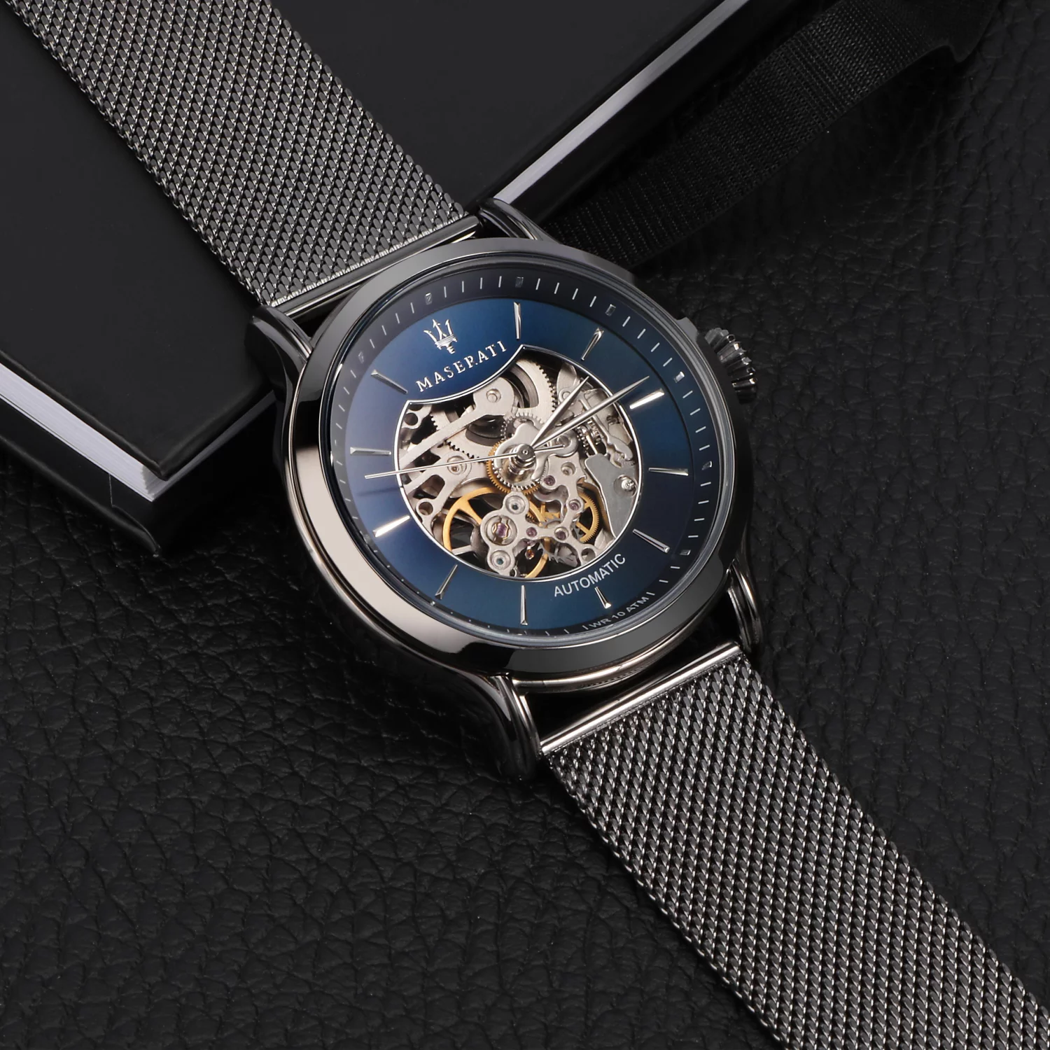 ساعة مازيراتي للرجال أصلية موديل R8823118002 لون ازرق و استيك معدن ستانلس لون رمادي غامق.