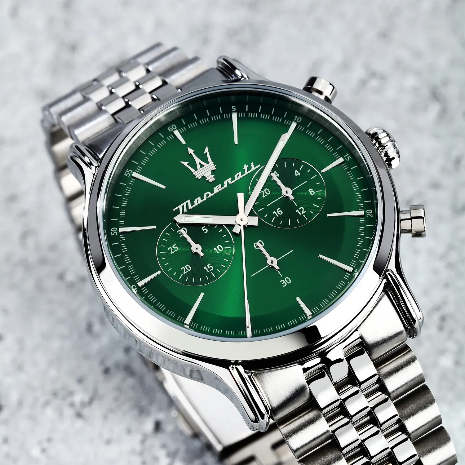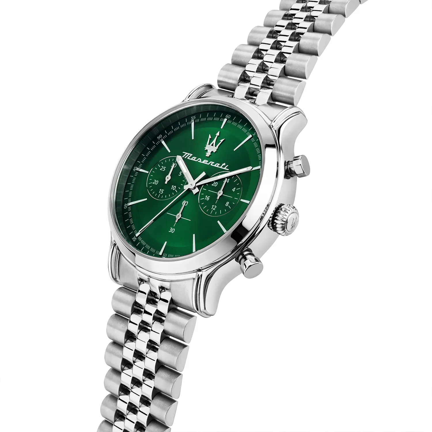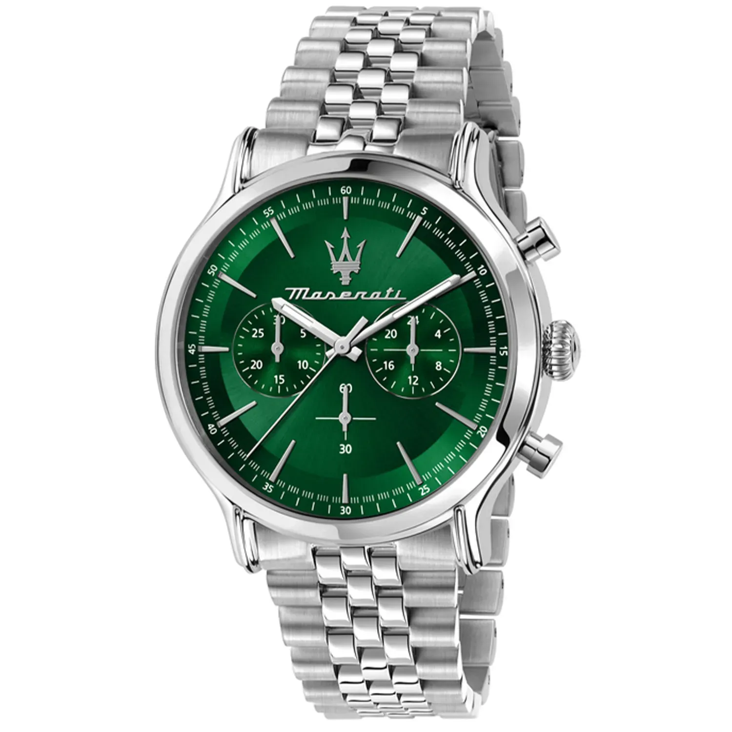 ساعة مازيراتي للرجال أصلية موديل R8873618033 لون اخضر و استيك معدن ستانلس لون فضي.