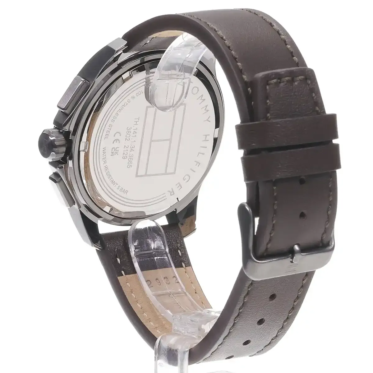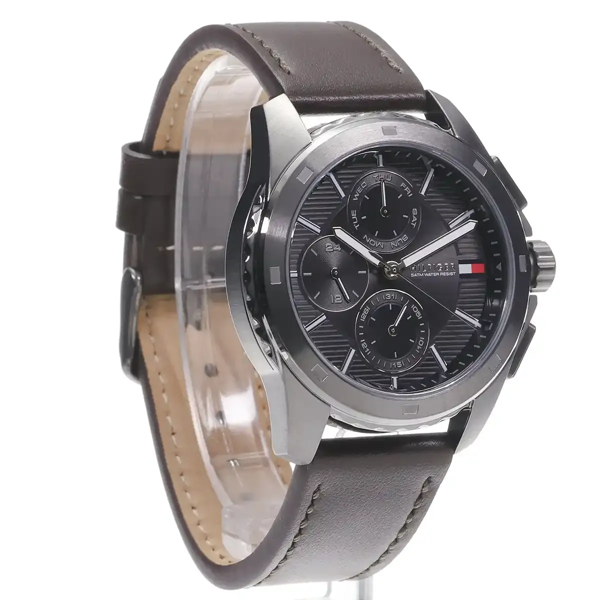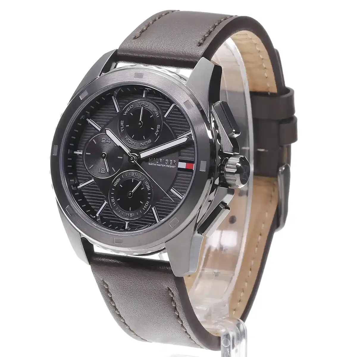 Original Tommy Hilfiger watch for men Trent 1710623 with Grey dial Brown Leather Strap color 50m Water Resistance