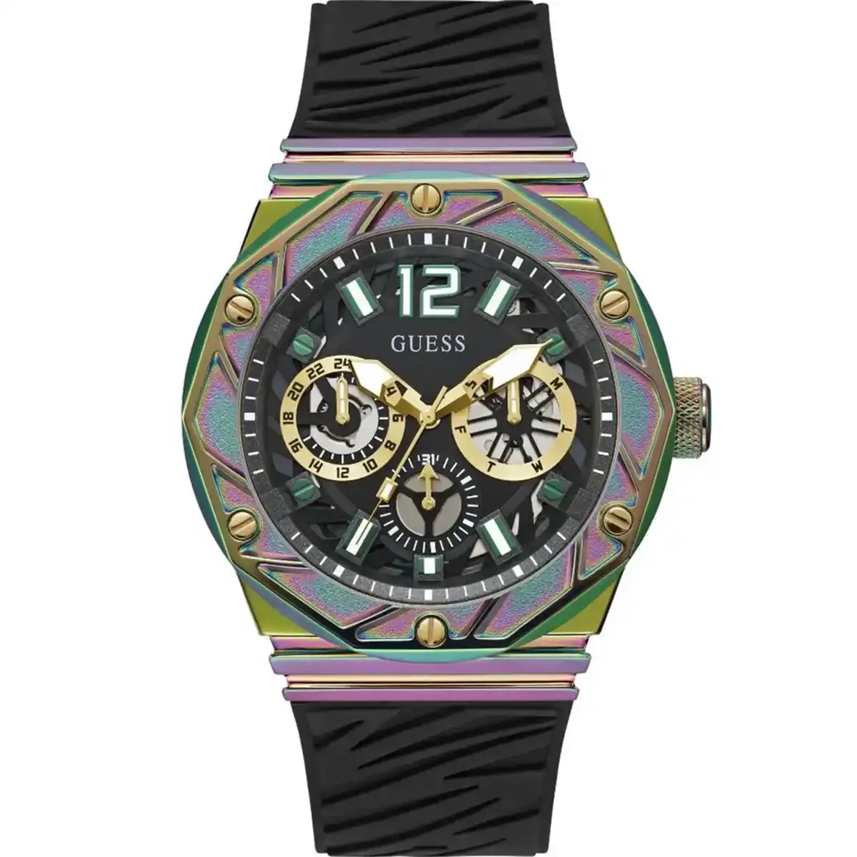 Original Guess Watch Classic for Men GW0634G3 Black dial Black Rubber Strap Belt