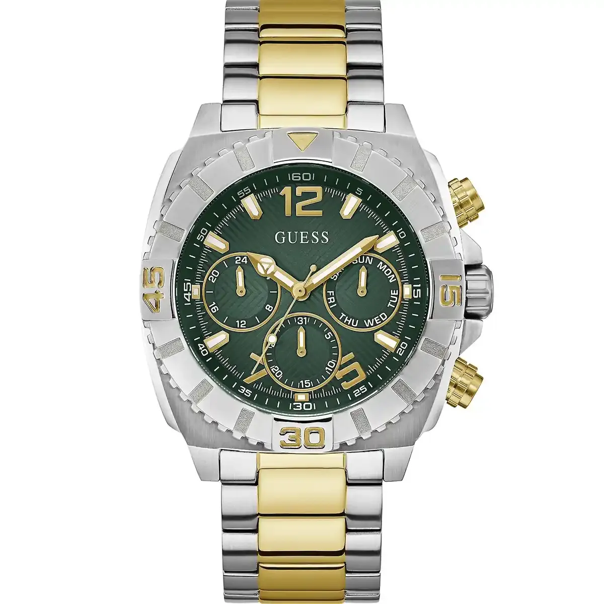 Original Guess Watch Traction for Men GW0800G1 Green dial Half Gold Metal Strap Belt