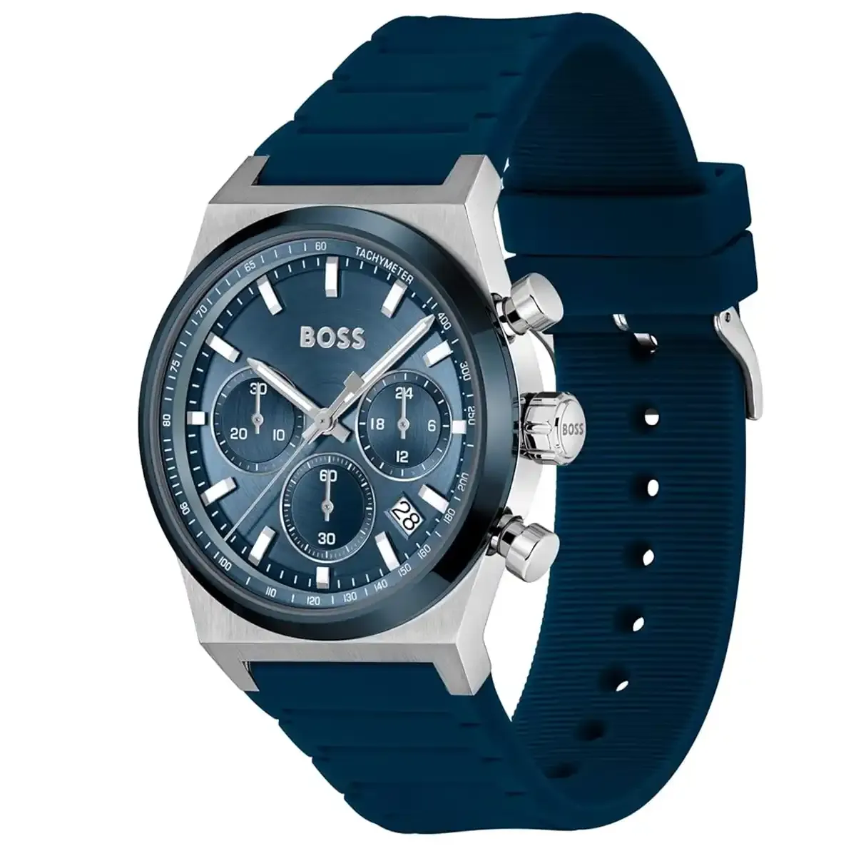 Original Hugo Boss Watch For Men Candor For Men 1514243 Blue dial Blue Rubber Strap .