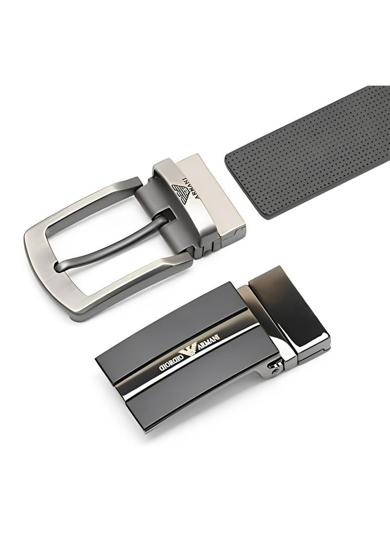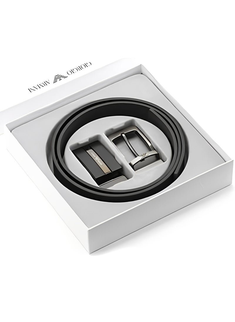 This Giorgio Armani belt set is a testament to craftsmanship and modern design. The reversible belt, featuring both black and brown sides, offers incredible versatility, allowing you to effortlessly switch up your style to suit any occasion. The sleek and minimalist design, combined with the high-quality leather and iconic Giorgio Armani branding, ensures you’ll make a statement wherever you go.