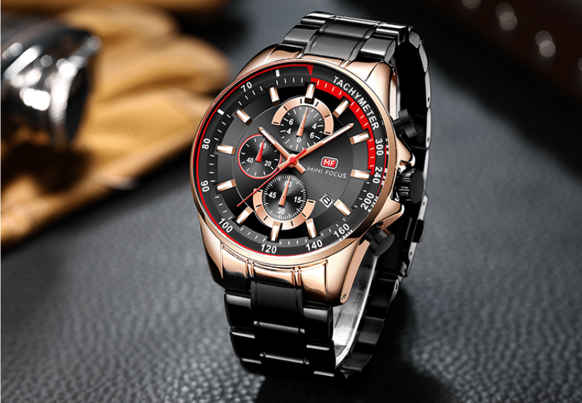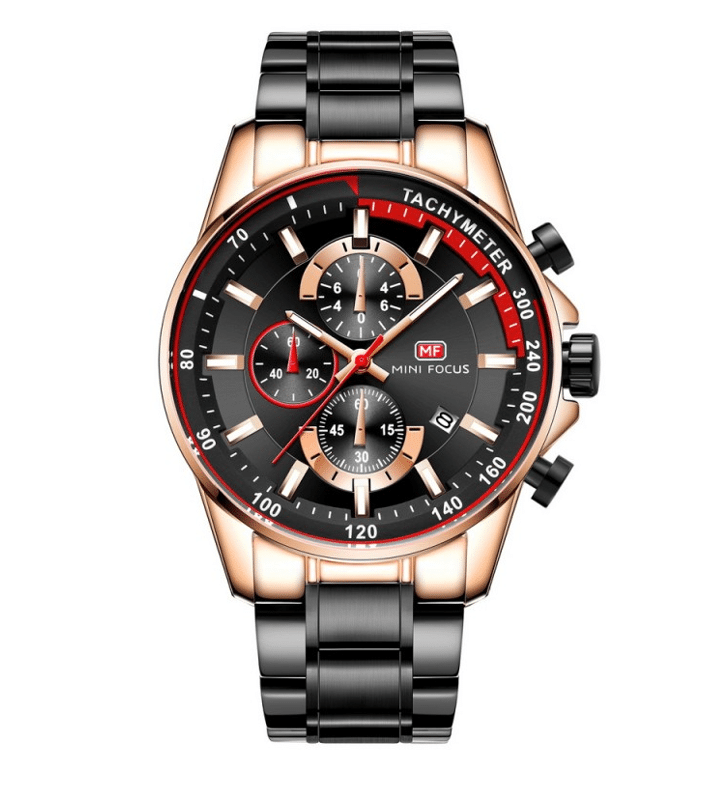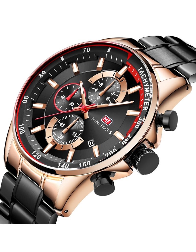 ساعة MINI FOUCS رجالي أصلية موديل MF0218.02 بلون اسود و استيك معدن بلون اسود