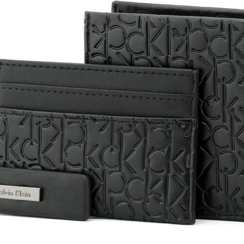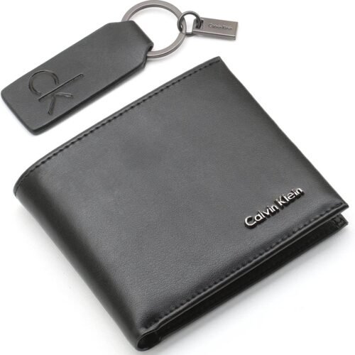 محفظه كالفن كلاين للرجال ثلاث قطع، جلد ، اسود